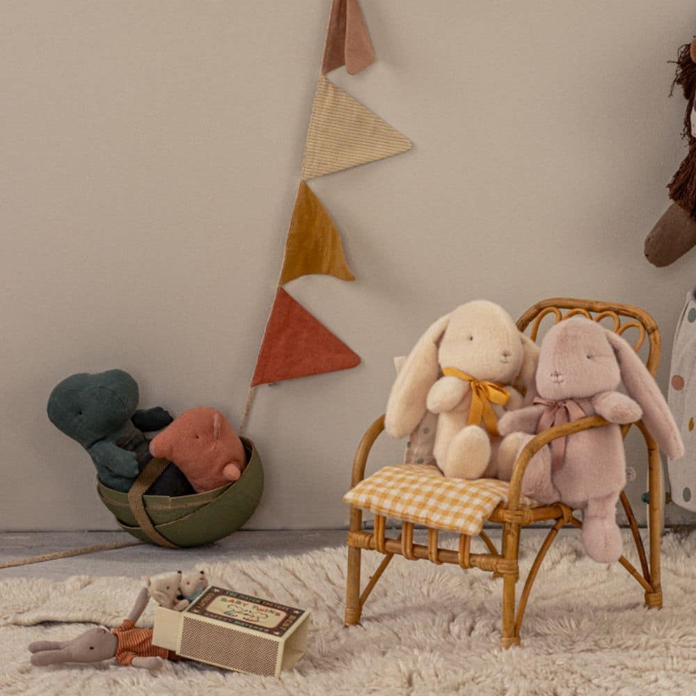 Maileg – a cream-colored bunny that charms with its softness and gentle expression. Made from wonderfully plush fabric, this bunny features a sweet bow around its neck. A lovely gift for little ones and older children alike.