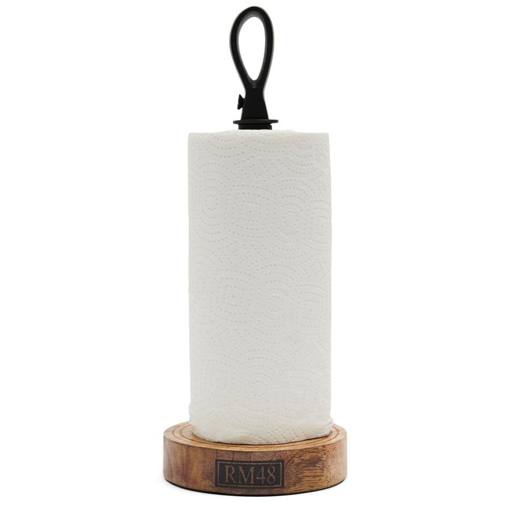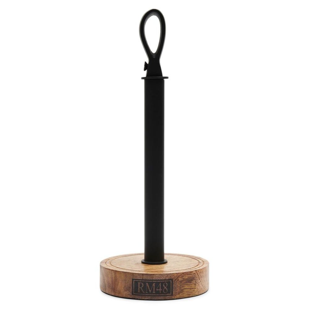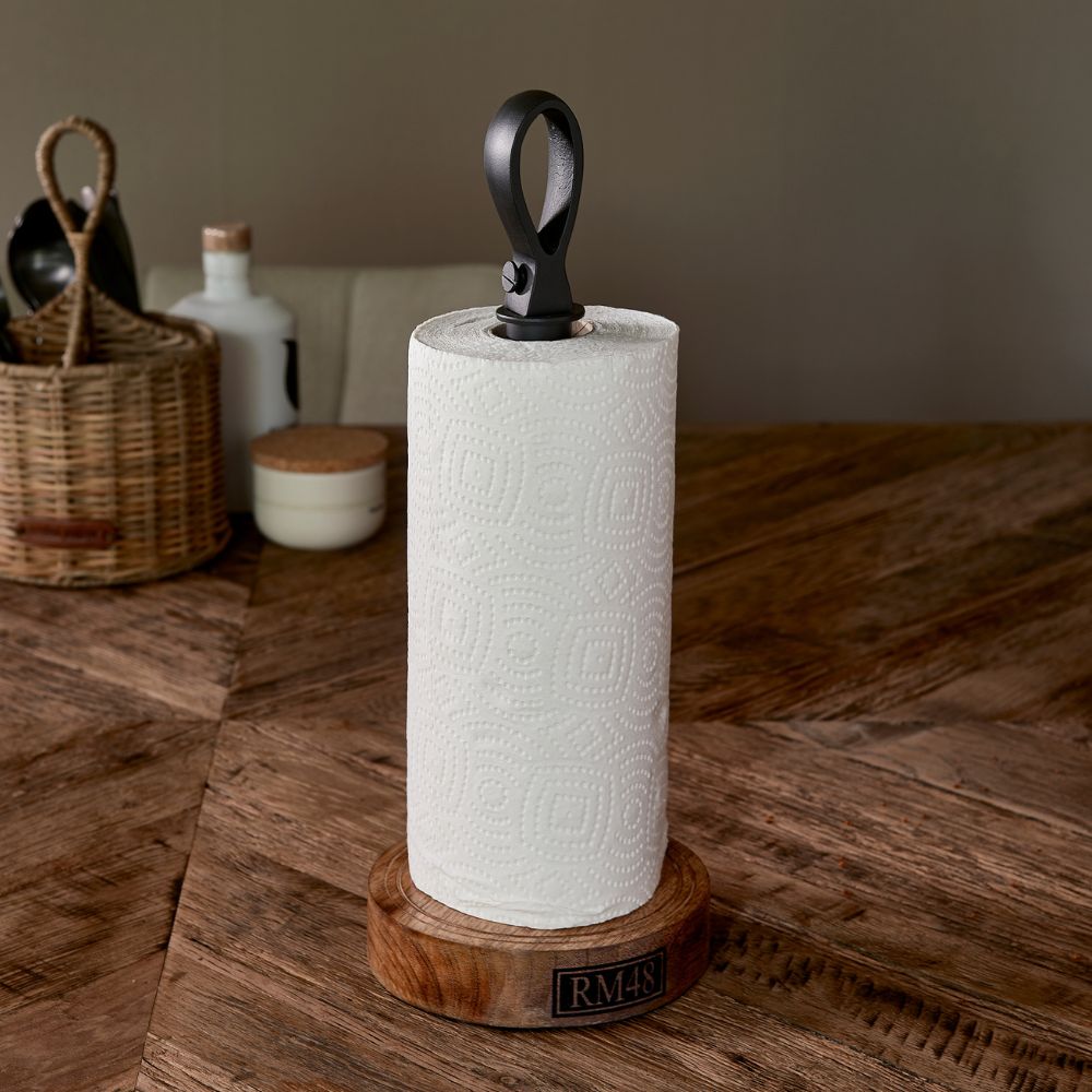 This paper towel holder fits perfectly into contemporary kitchens where clean lines and rustic details are appreciated. The contrast of natural wood and black metal adds character, turning this into more than just a functional piece. Easy to move around thanks to the handle, it keeps the kitchen roll neatly in place. Its compact size makes it suitable for both small and large kitchens, bringing convenience to everyday use.