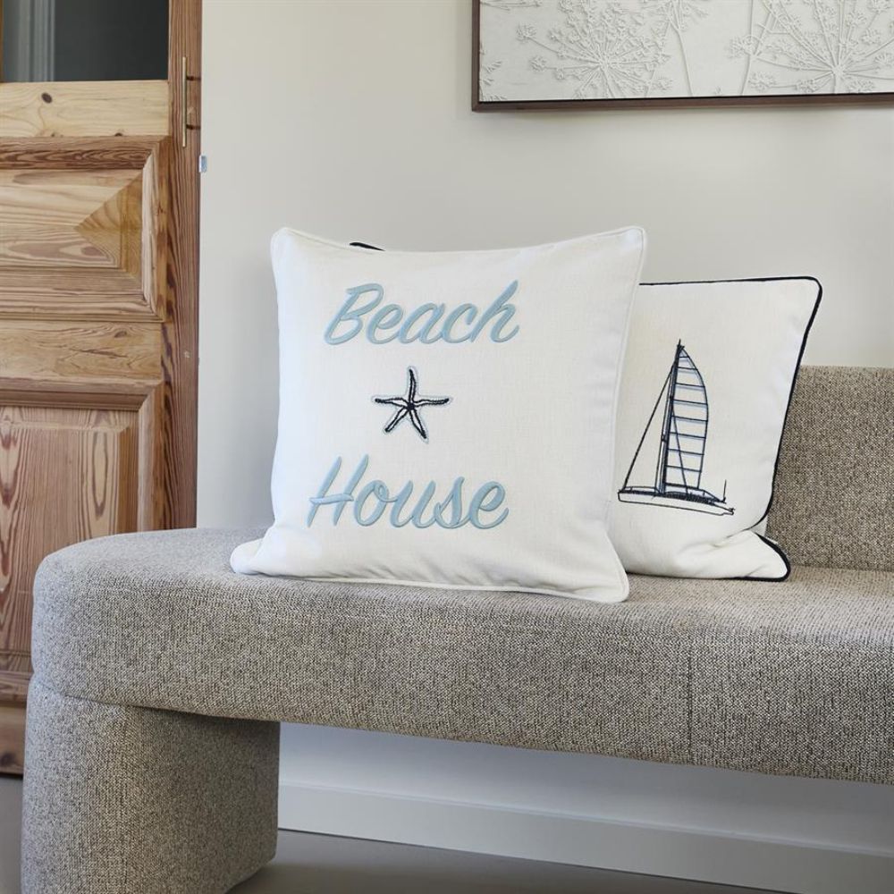 The Beach House pillow adds a summery and easygoing touch to your interior, especially in coastal-inspired spaces. It works well as a single accent piece or combined with other cushions. The motif and text give it character while maintaining a calm overall feel. The light color makes it easy to pair with different tones.