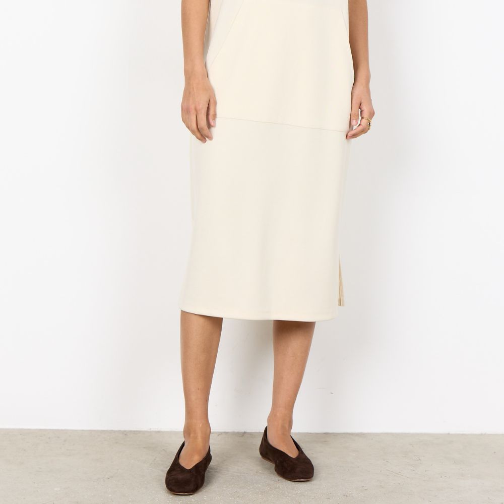 Luonnonvalkoinen modaalimekko on mukava valinta rentoon pukeutumiseen. Hupun ja etutaskun ansiosta mekko tuntuu käytännölliseltä ja rennolta. Malli on helppo yhdistää tennareihin tai muihin arkikenkiin. Modaalin ja elastaanin yhdistelmä tekee kankaasta pehmeän ja hieman joustavan. Mekon pituus ylettyy noin polviin, ja suoralinjainen leikkaus sopii monenlaisiin vartalotyyppeihin.
