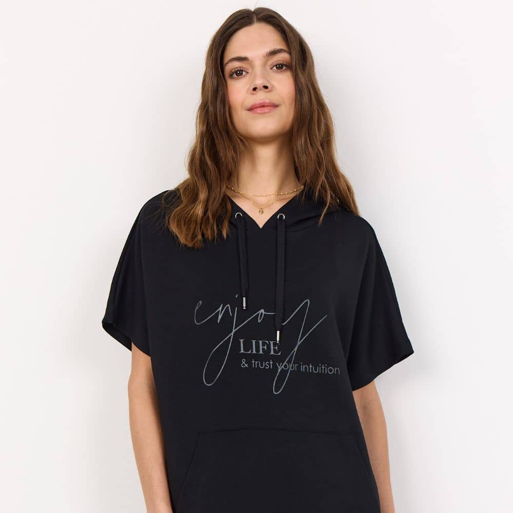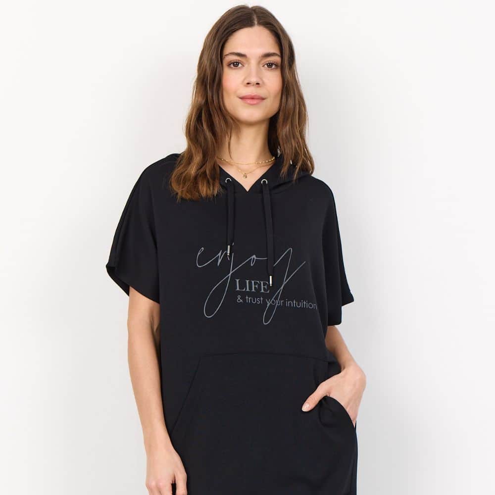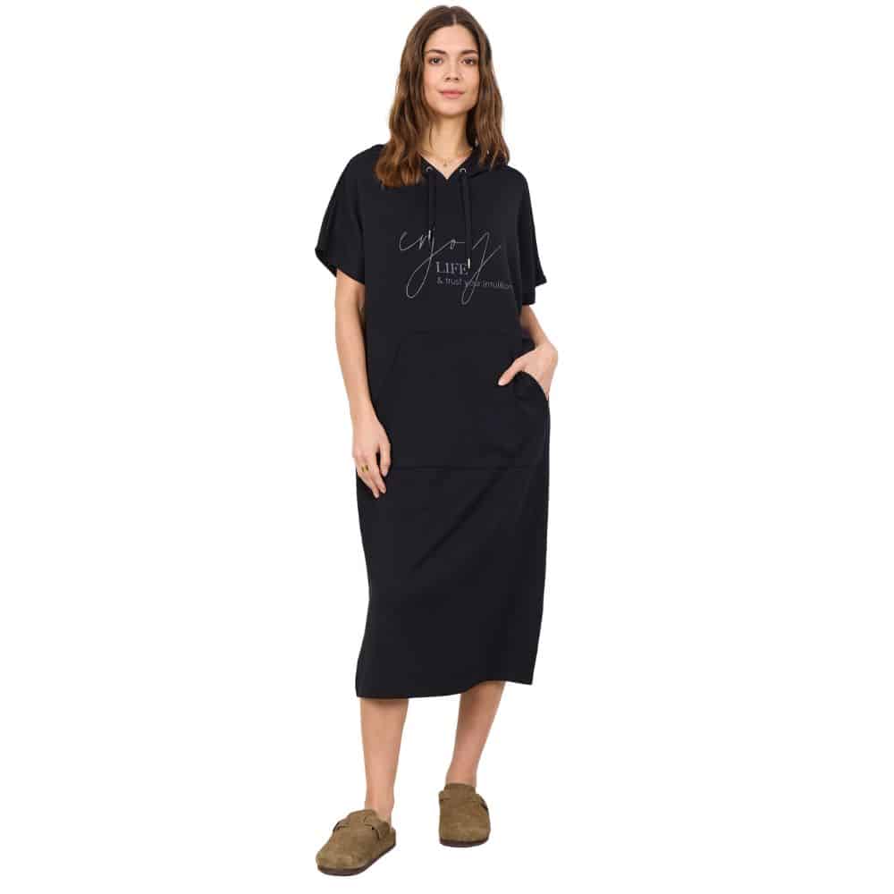Soyaconcept – rennon tyylikäs musta collegemekko, jossa yhdistyy mukavuus ja huoleton arkipukeutuminen. Pehmeä materiaali ja väljä istuvuus tekevät tästä mekon, jota tekee mieli käyttää uudelleen ja uudelleen.