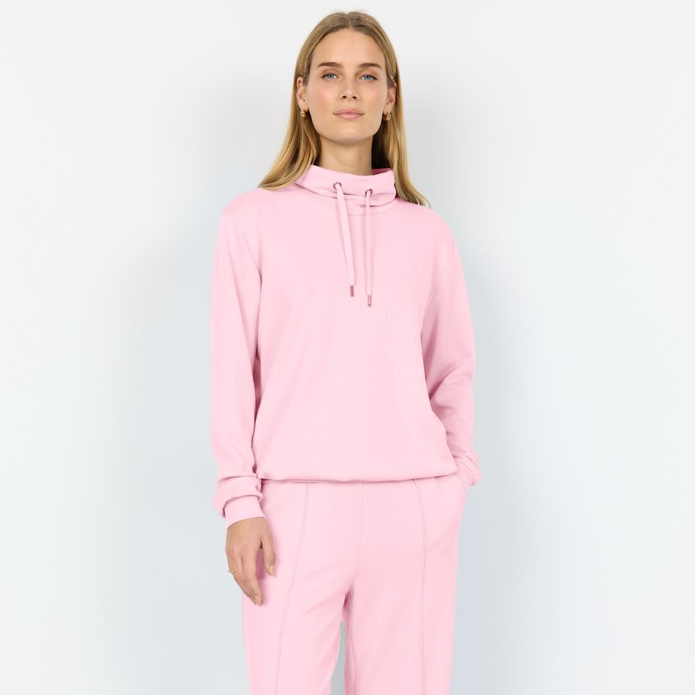 Soyaconcept – vaaleanpunainen modaalicollegepaita on pehmeä ja mukava valinta rentoon arkeen ja kotihetkiin. Miellyttävä materiaali tuntuu kevyeltä ja joustavalta päällä. Väljä malli luo huolettoman ja rennon ilmeen.