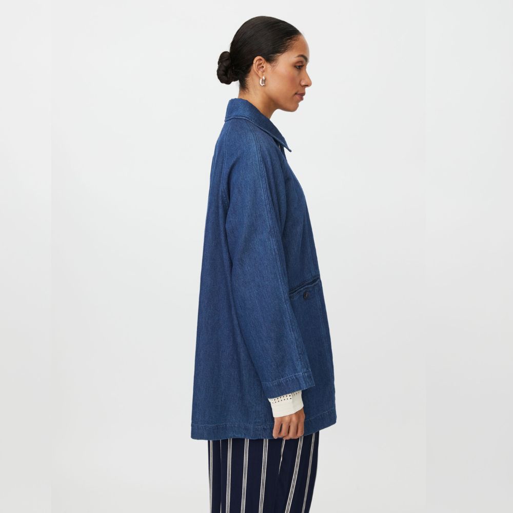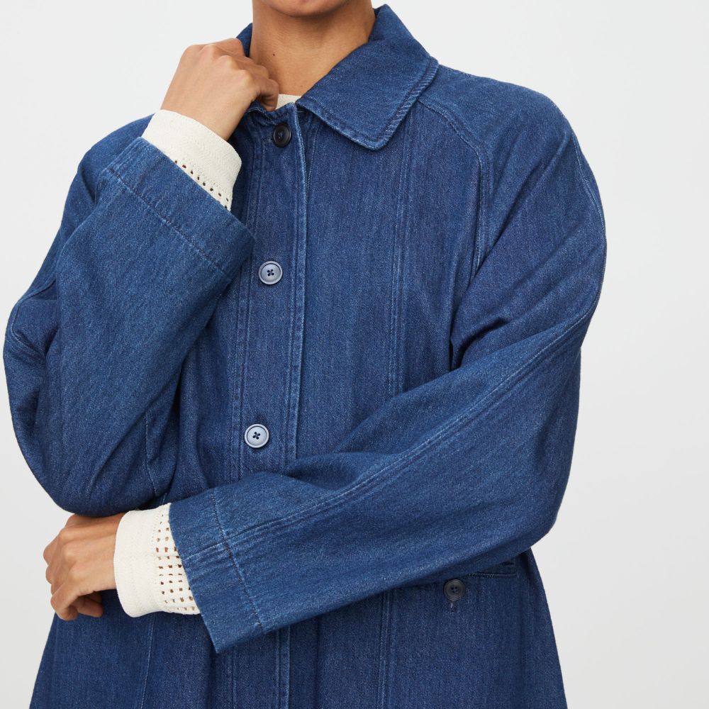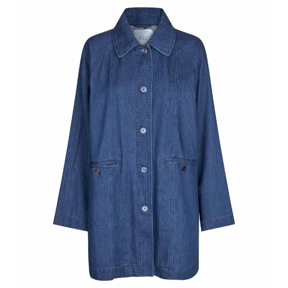 Masai – tyylikäs farkkutakki, jossa A-linjainen malli, kaulukset ja näyttävät nappiyksityiskohdat tuo asuun rentoa ja ajankohtaista ilmettä. Kevyt materiaali ja väljä A-linjainen malli tekevät siitä miellyttävän käyttää. Takki sopii hyvin kerrospukeutumiseen eri vuodenaikoina.