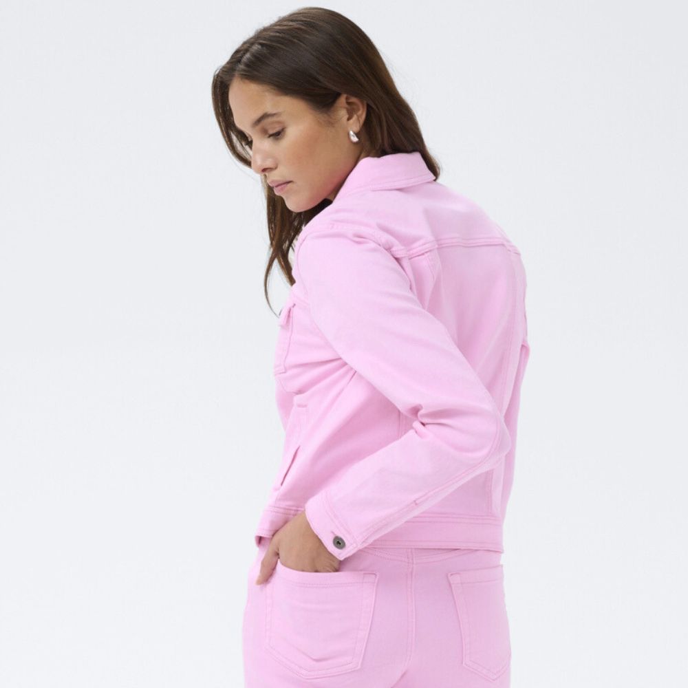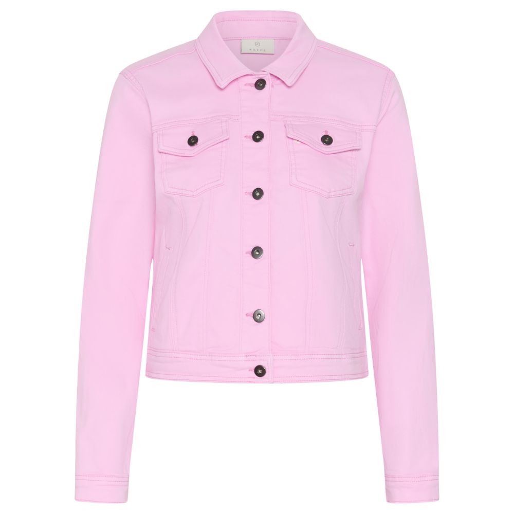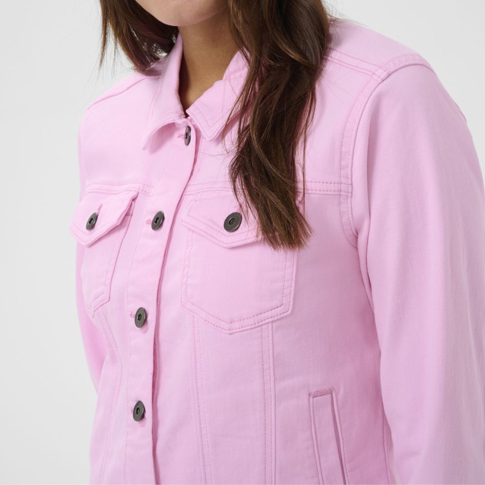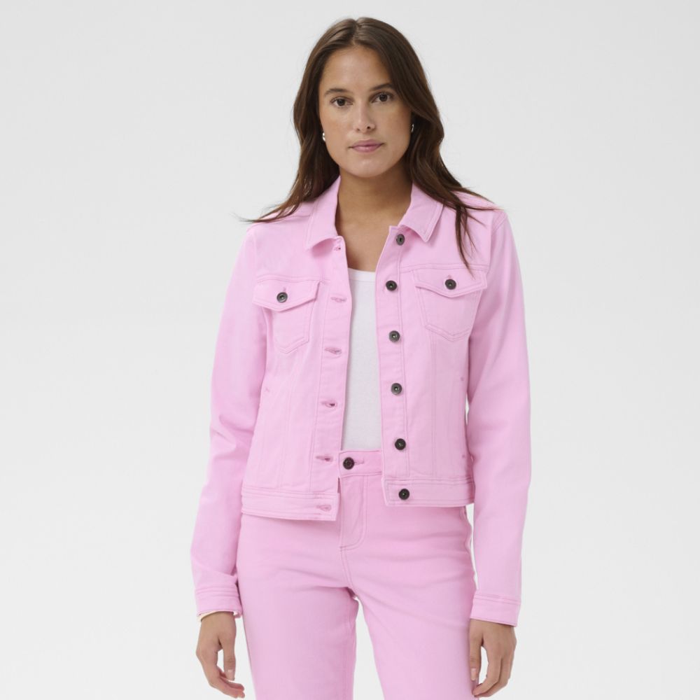 Kaffe – lupiinin sävyinen farkkutakki, joka hurmaa ihanalla sävyllään ja klassisella mallillaan. Farkkutakin edessä on napitus helmaan saakka, napilliset rintataskut ja perinteinen kaulus. Voit pitää takkia sekä aukinaisena että kiinni.