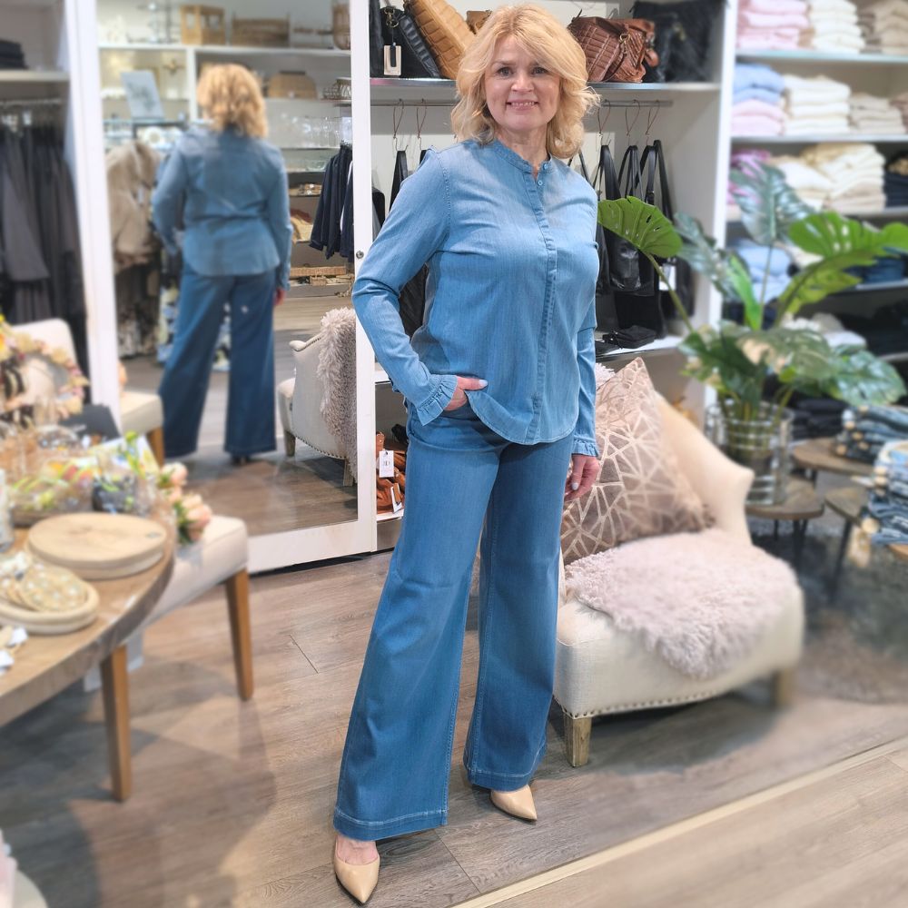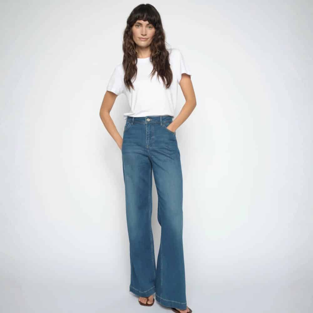Mos Mosh – keskisiniset farkut, joissa leveät lahkeet ja korkea vyötärö. Leveät lahkeet luovat kauniin ja imartelevan siluetin. Leveälahkeiset ja klassisen siniset farkut sopivat niin arkeen kuin iltamenoihin.
