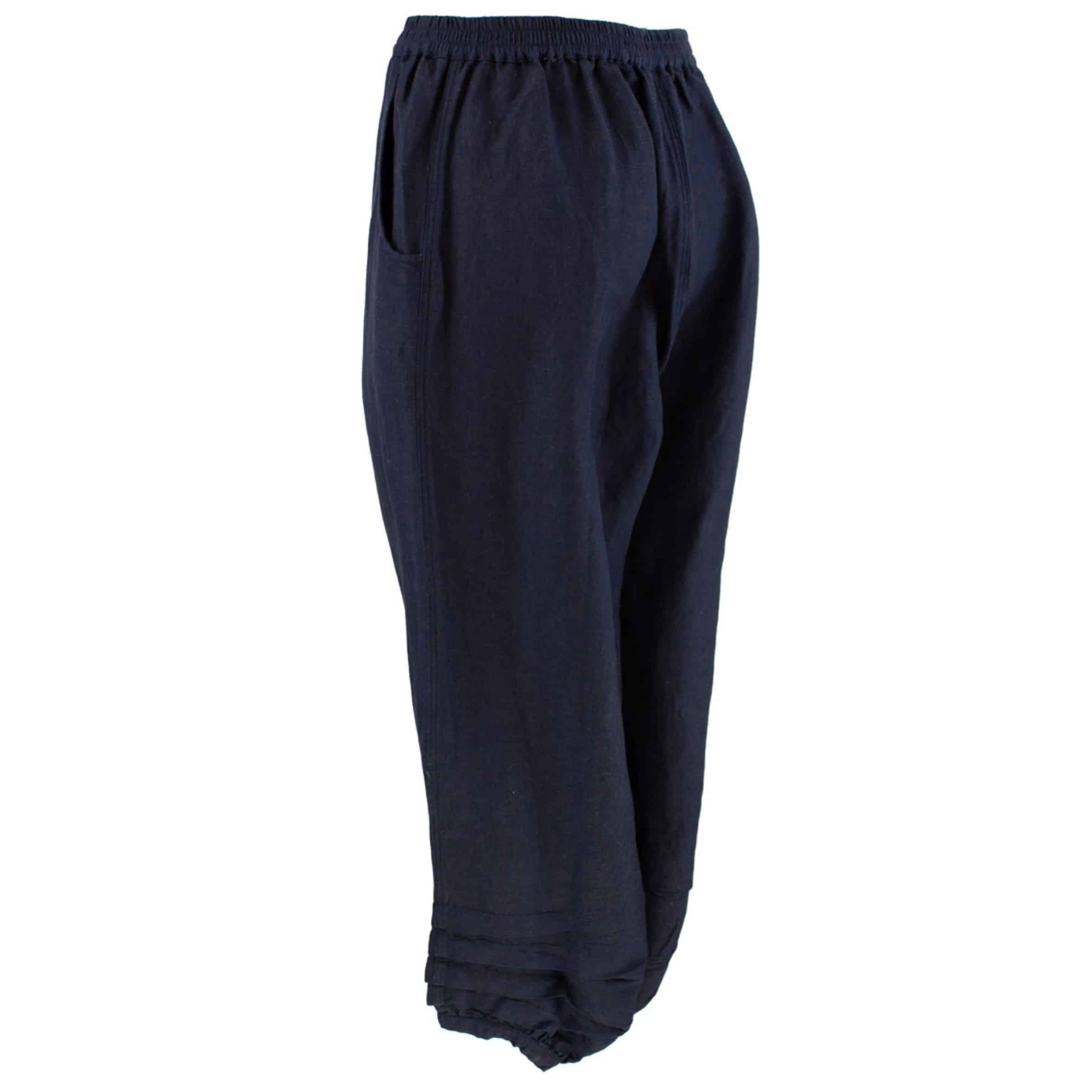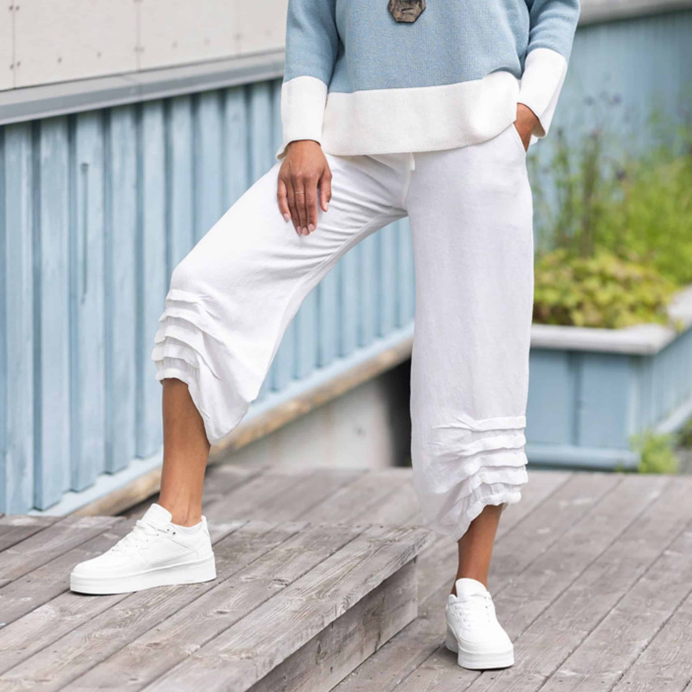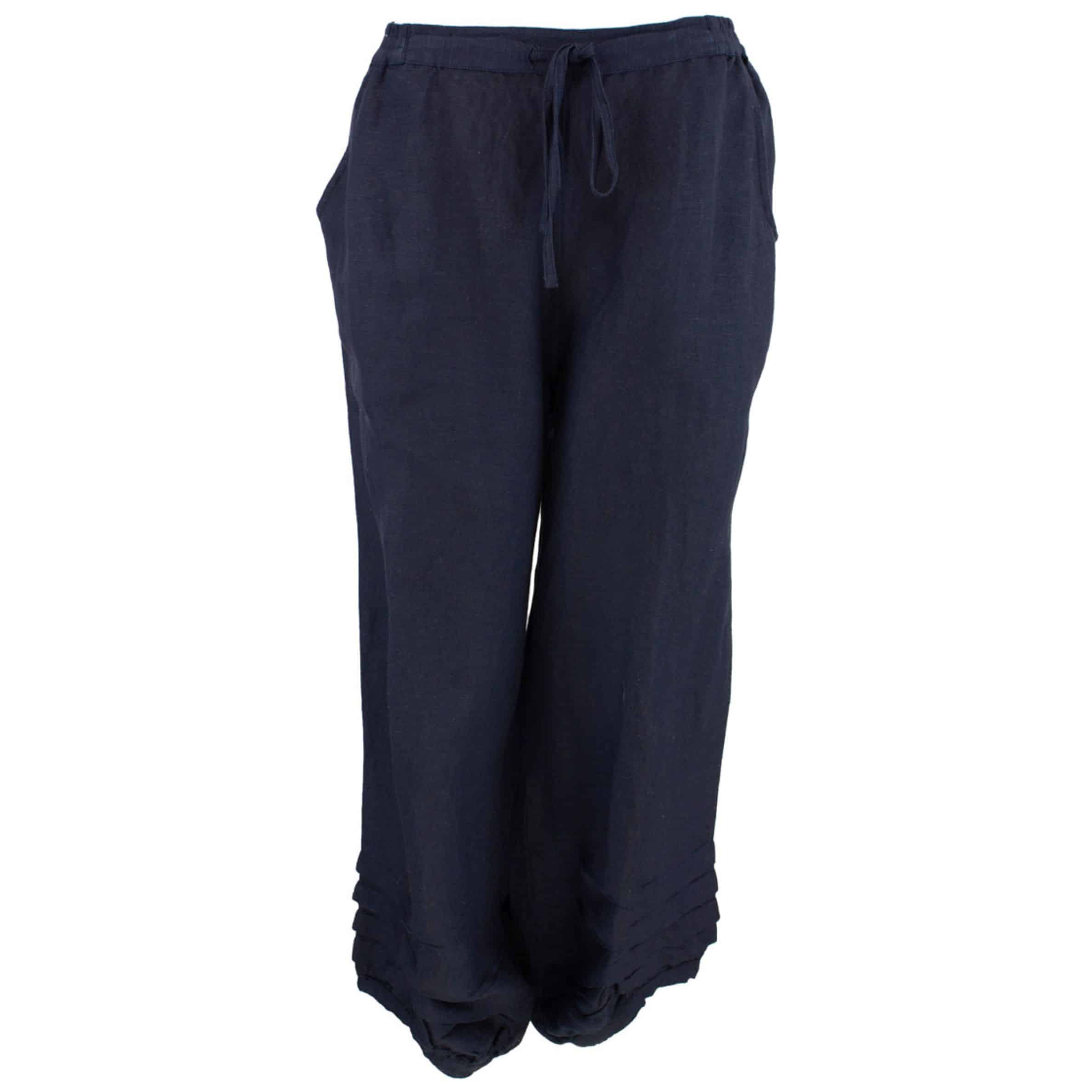 Siniset pellavahousut tuovat pukeutumiseen raikasta ilmettä ja rentoa tyyliä. Kevyt materiaali ja väljä malli tekevät niistä mukavat käyttää koko päivän ajan. Ne sopivat hyvin niin arkeen kuin vapaa-aikaan.