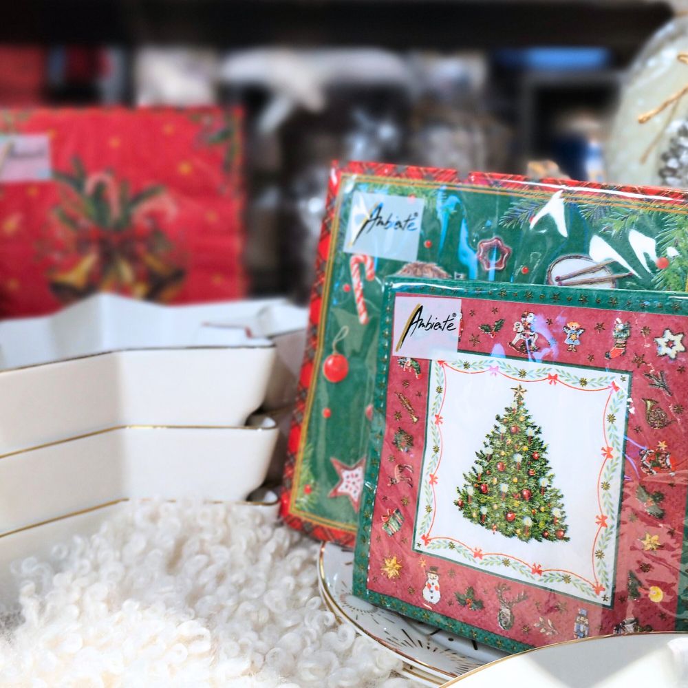 Jouluisissa paperiserveteissä toistuvat vihreän ja punaisen sävyt, jotka sopivat erinomaisesti jouluiseen kattaukseen. Servetit viimeistelevät juhlapöydän kattauksen ja ilmeen.