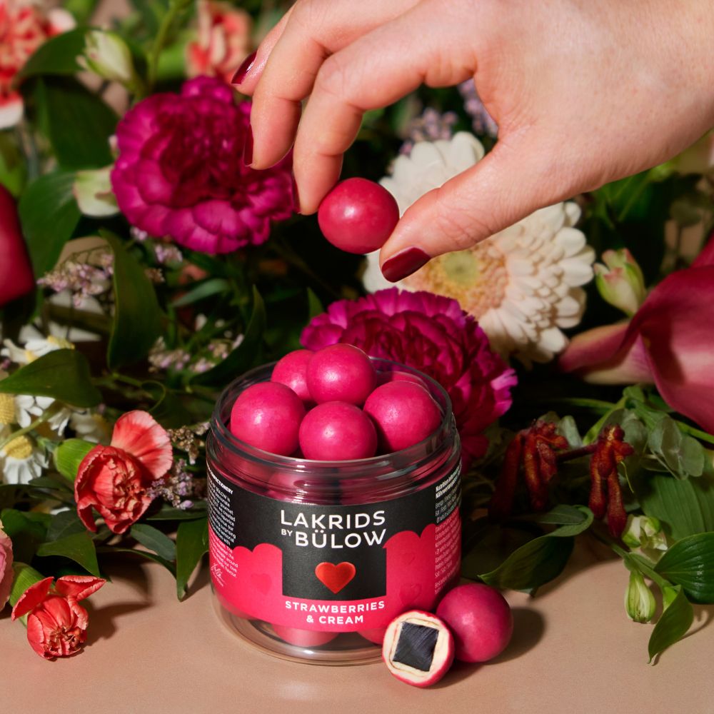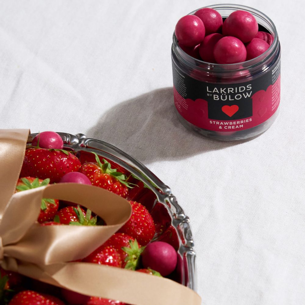 Strawberries & Cream – maku yhdistää lakritsisydämen ympärille maukasta valkosuklaata ja makeaa mansikkaa. Gluteenittomat lakritsimakeiset sopivat myös keliaakikolle. Kompaktin kokoinen rasia on täydellinen valinta herkkuhetkeen tai lahjaksi annettavaksi!