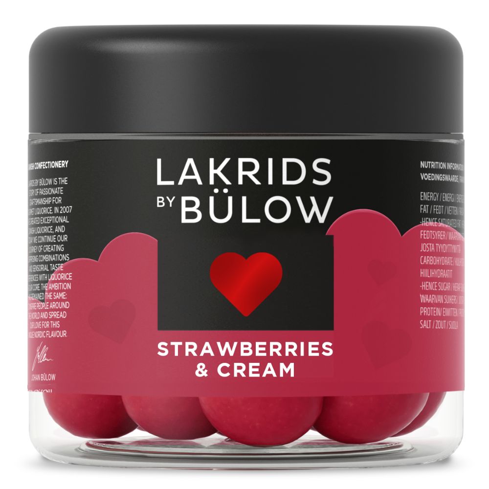 Lakrids – herkullinen mansikan makuinen lakritsi, jossa makupalettiin yhdistyvät pehmeä kerma ja valkosuklaan maku. Kokonaisuus on lempeän täyteläinen ja mansikkainen.
