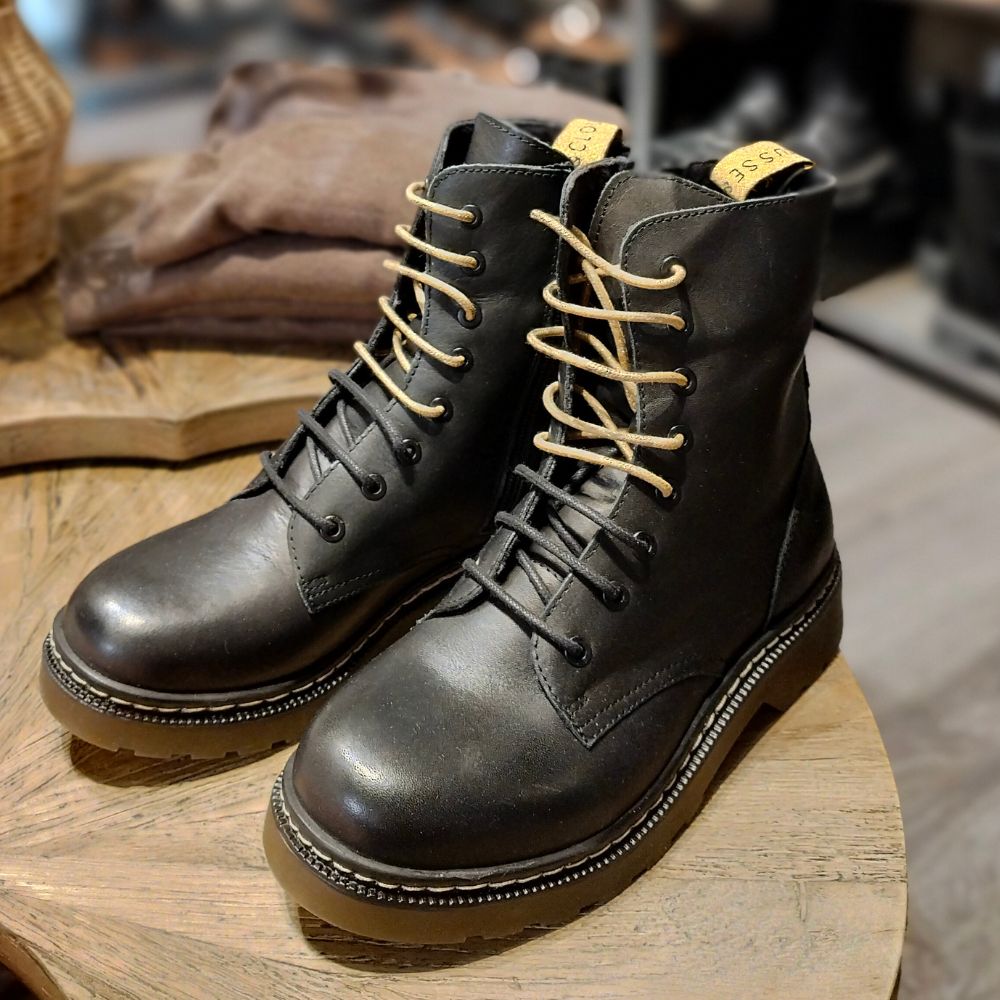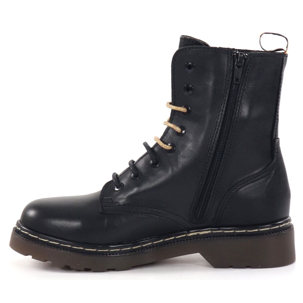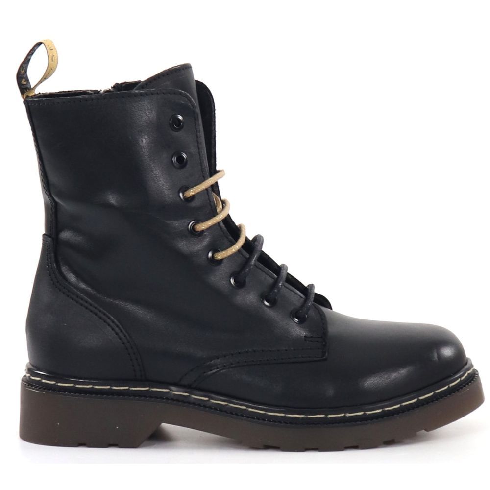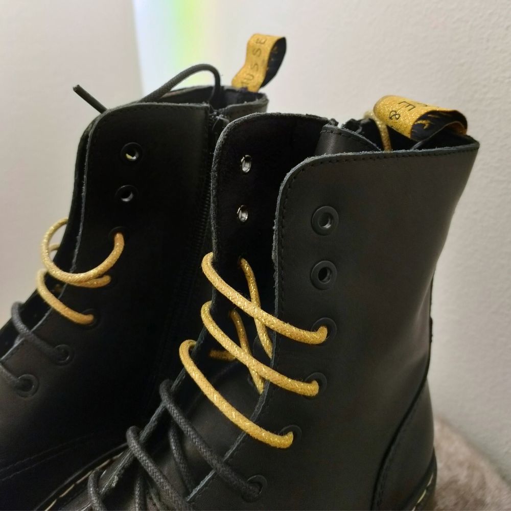 Musse & Cloud – naisten lyhytvartiset nahkamaiharit, joissa kullansävyinen vetolenkki ja sivulla vetoketju. Kenkien mukana tulee mustat ja kultaiset nauhat – voit siis vaihdella nauhojen avulla kenkien ilmettä!