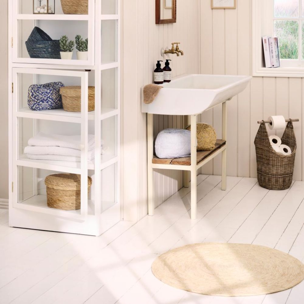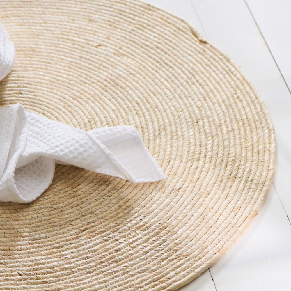 Maissinlehdistä valmistettu matto tuo tilaan lämpöä ja luonnollista tekstuuria. Punottu pinta tekee matosta elävän ilman voimakasta kuviota. Se sopii hyvin skandinaaviseen ja rennompaan sisustukseen. Matto toimii kauniisti eteisessä, makuuhuoneessa tai pienenä katseenvangitsijana olohuoneessa. Pyöreä muoto pehmentää tilan ilmettä. Se sopii myös yhteen muiden luonnonmateriaalien kanssa. Vaalea väri tuo valoa ja keveyttä sisustukseen. Matto on helppo yhdistää eri sävyihin ja huonekaluihin. Se tuo tilaan viimeistellyn mutta rennon kokonaisuuden.
