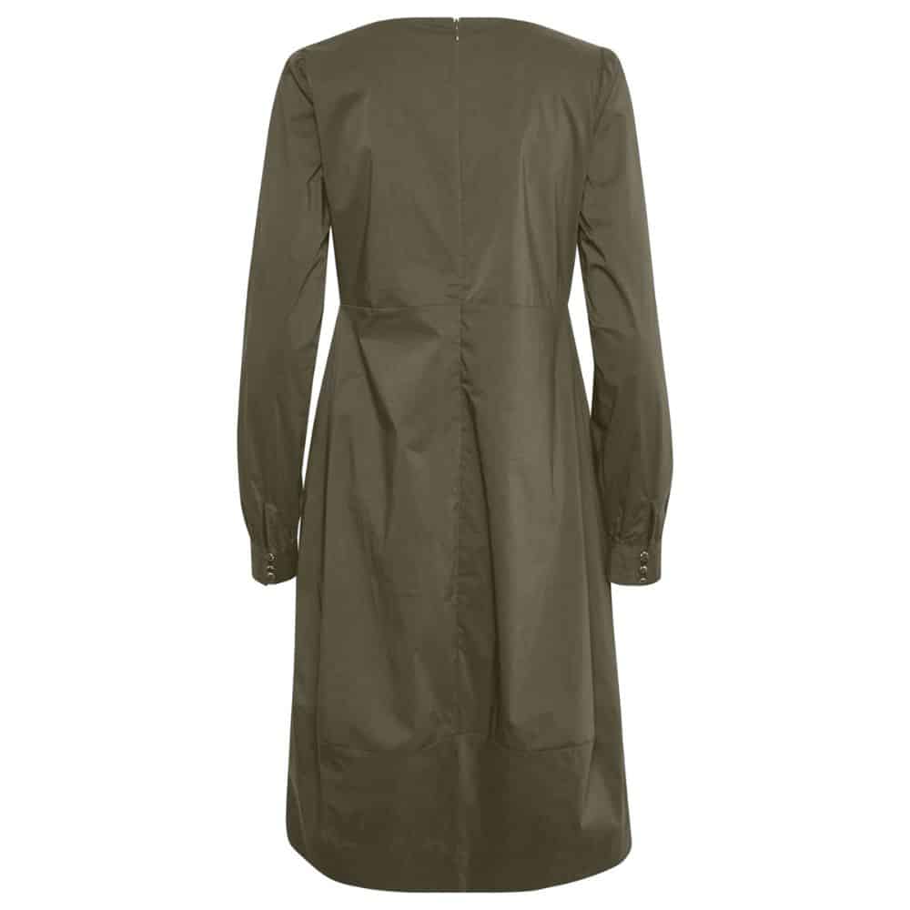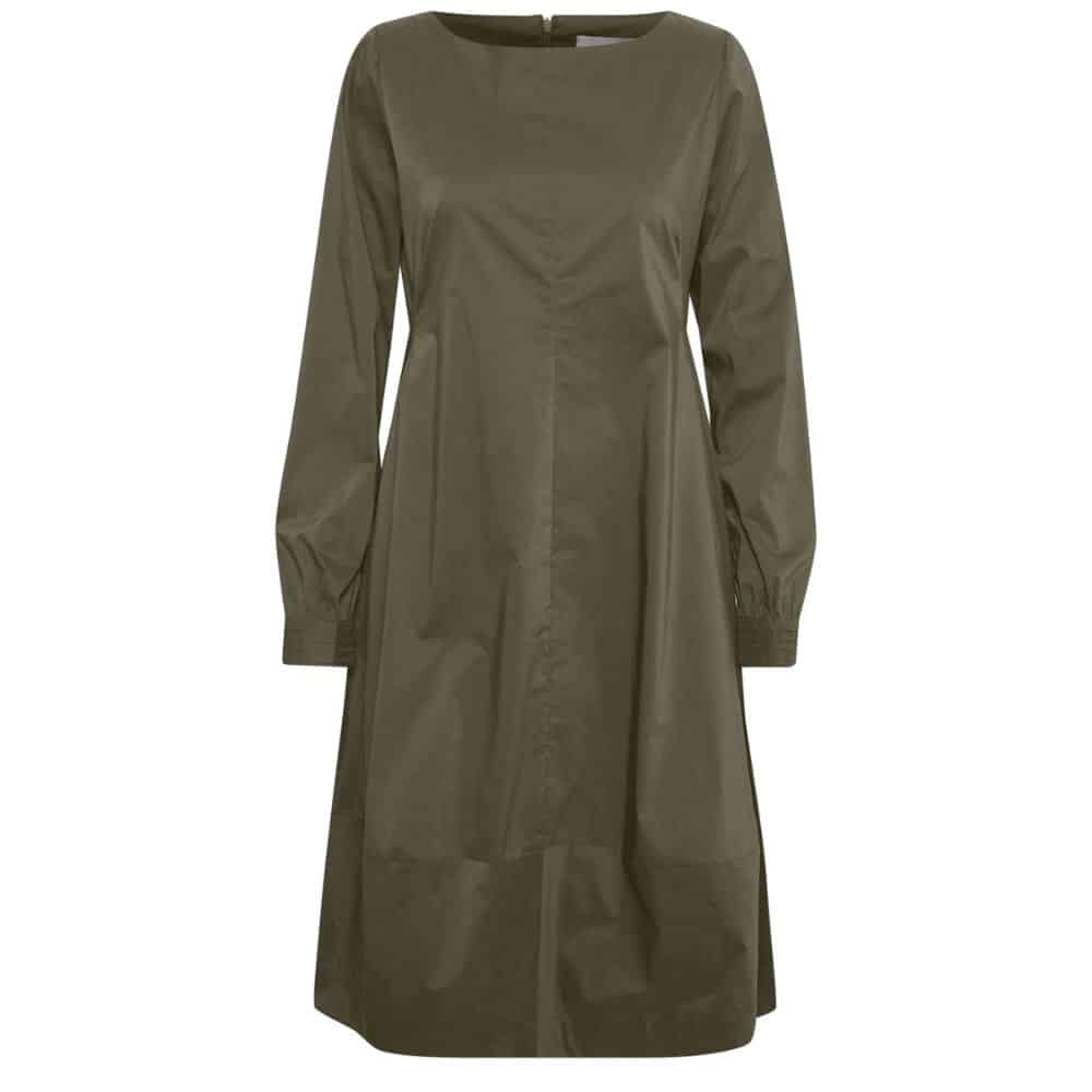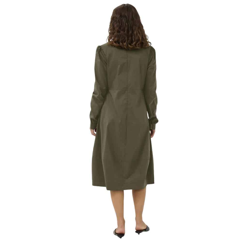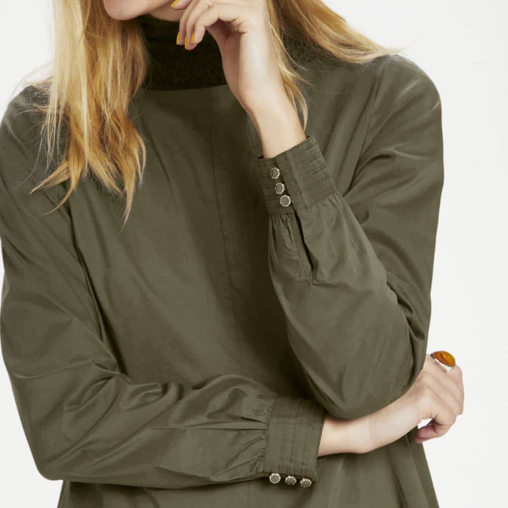 Culture – oliivinvihreä mekko, jossa ihanan kevyt materiaali ja rento mitoitus. Mekossa on pitkät hihat, olkapäillä pieni puhvirypytys ja hihansuissa kauniit napit. Upea midimittainen mekko on kaunis valinta juhliin tai arkeen.