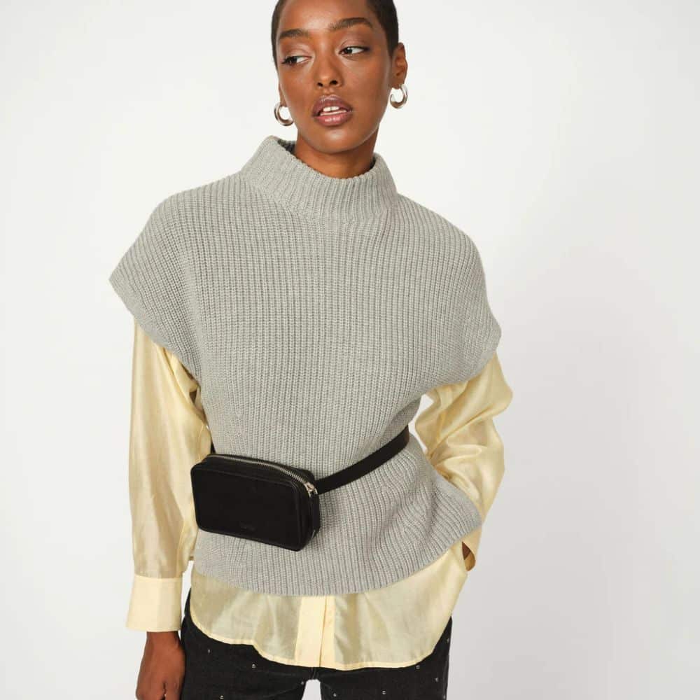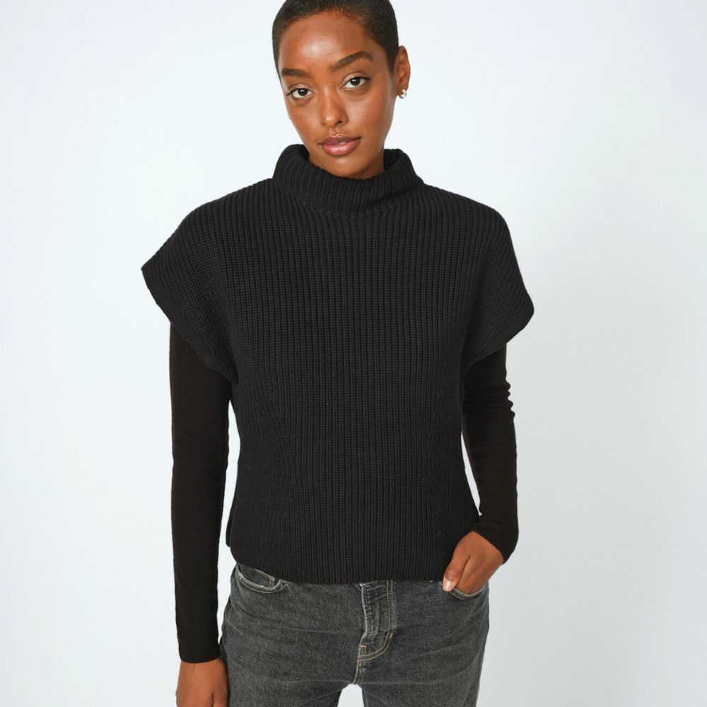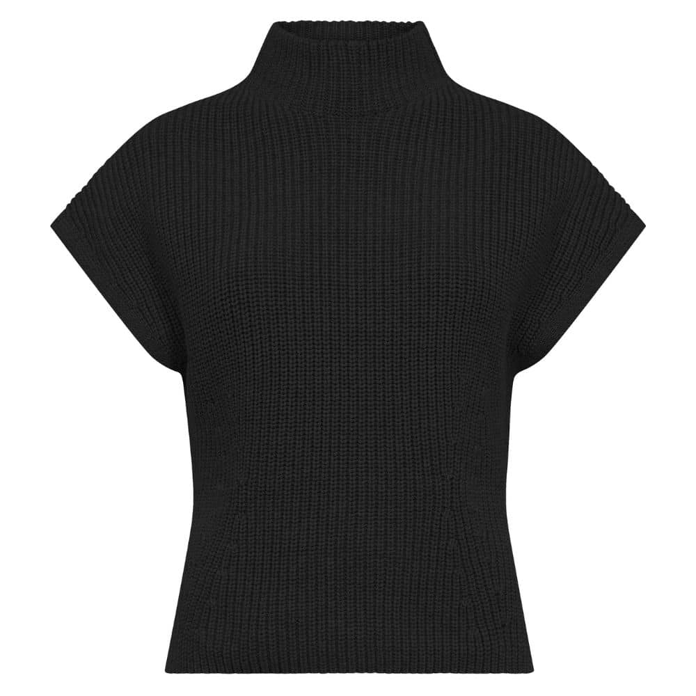 Mos Mosh – musta neuleliivi, jossa lyhyet hihat ja poolokaulus. Puuvillainen neulosliivi tuntuu ihanan pehmeältä ja hengittävältä yllä. Täydellinen yläosa kerrospukeutumiseen tai käytettäväksi sellaisenaan!