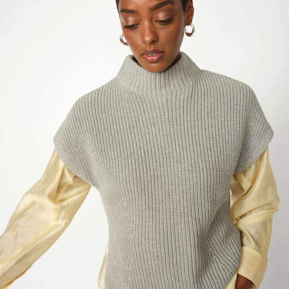 Neuleliivi toimii tyylikkäänä lisänä kauluspaidan tai mekon päällä, mutta näyttää hyvältä myös yksinään housujen tai hameen kanssa.