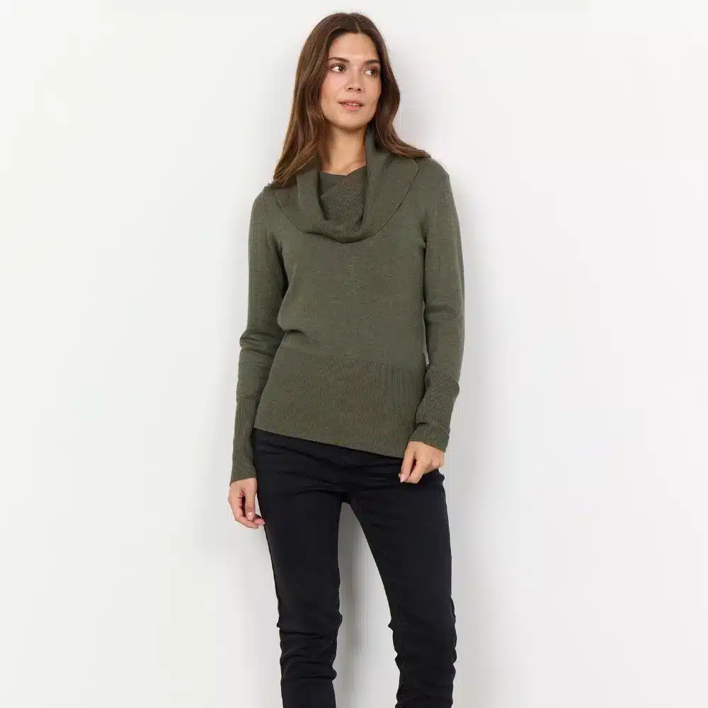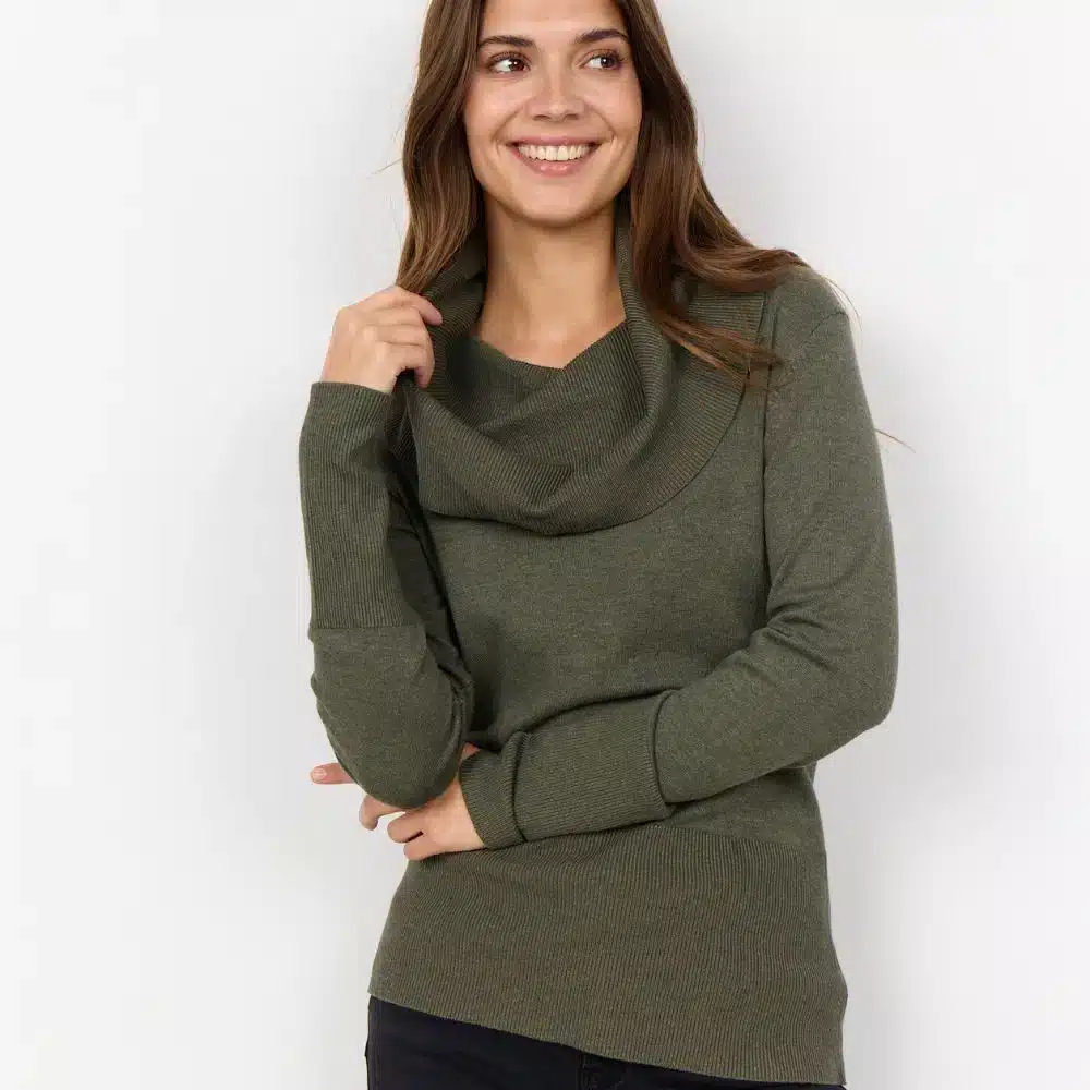 Fiiliskuvien oliivinvihreä pooloneule on saman mallinen – kuva fiilistä antamassa!