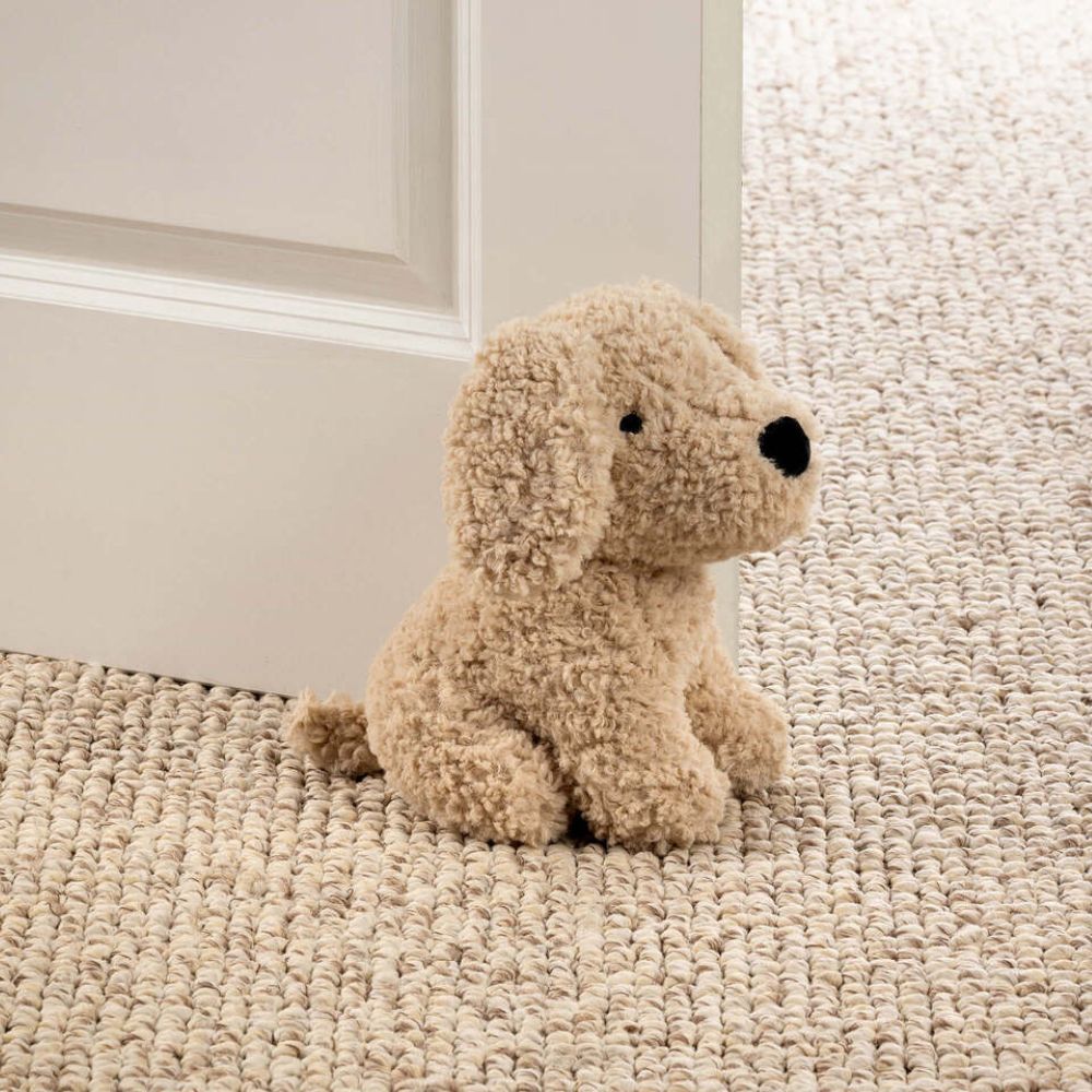 Koiranmuotoinen ovistoppari toimii katseenvangitsijana ja arjen apurina. Sen lempeä ilme sopii hyvin niin lastenhuoneeseen kuin olohuoneeseen. Pehmeä pinta tekee siitä miellyttävän näköisen osan sisustusta. Neutraali beige sävy sopii monenlaisiin värimaailmoihin. Ovistopperi näyttää hyvältä lattialla oven vieressä ilman, että se vie liikaa huomiota. Se on pieni mutta toimiva yksityiskohta kodin arjessa.