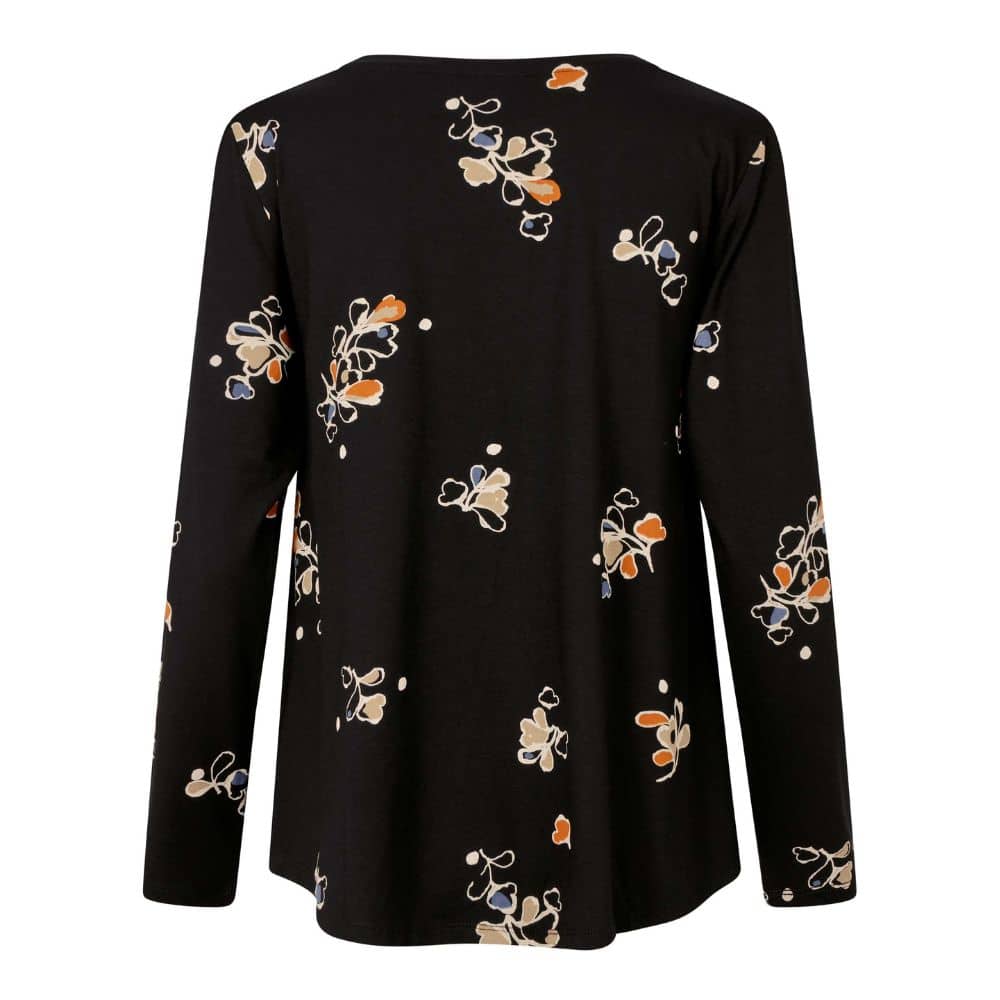 Masai – kuviollinen ihanan joustava trikoopaita on pehmeä ja miellyttävä yläosa arkeen ja vapaa-aikaan. A-linjainen malli laskeutuu kauniisti ja antaa rennon siluetin. Pyöreä pääntie ja pitkät hihat tuovat ilmeeseen yksinkertaista tyylikkyyttä.