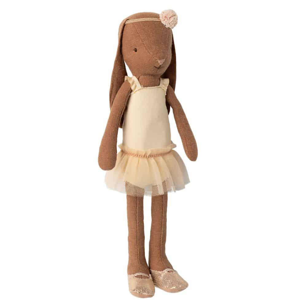 Maileg – herttainen pupu, joka on yllään kermanvalkoinen ballerinan asu ja panta. Ruskea luppakorvainen pupu on ihana leikkikaveri ja myös erinomainen lahjaidea!