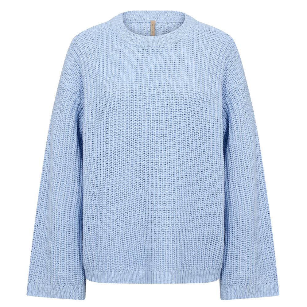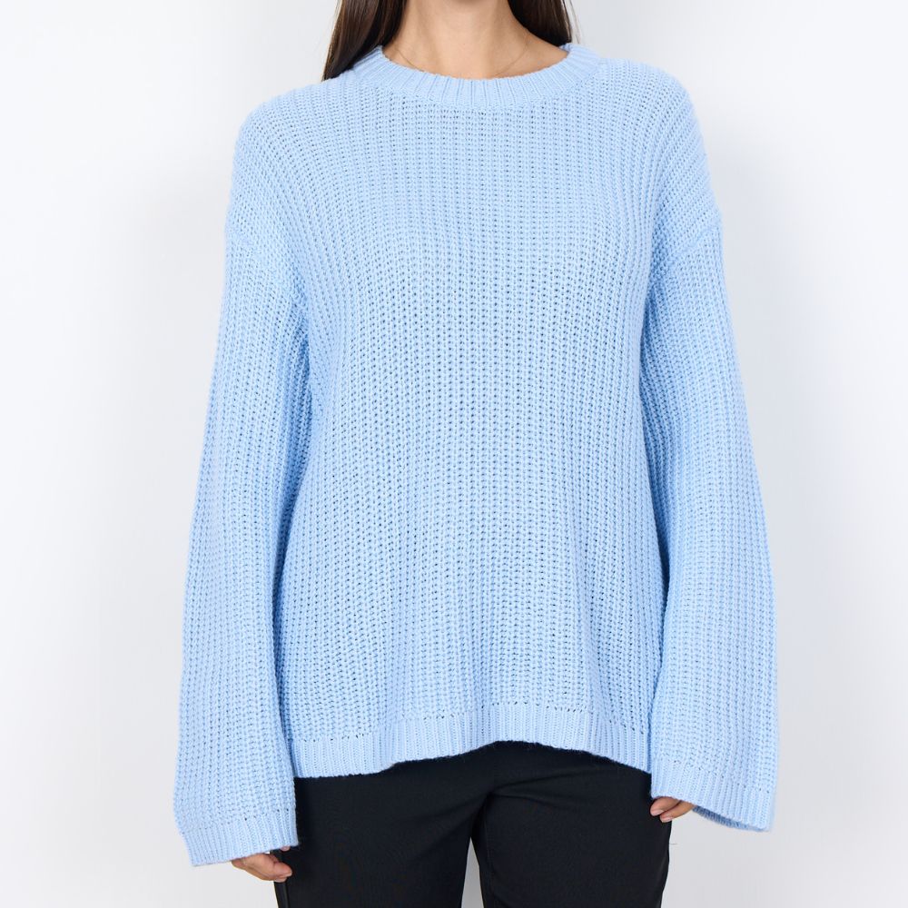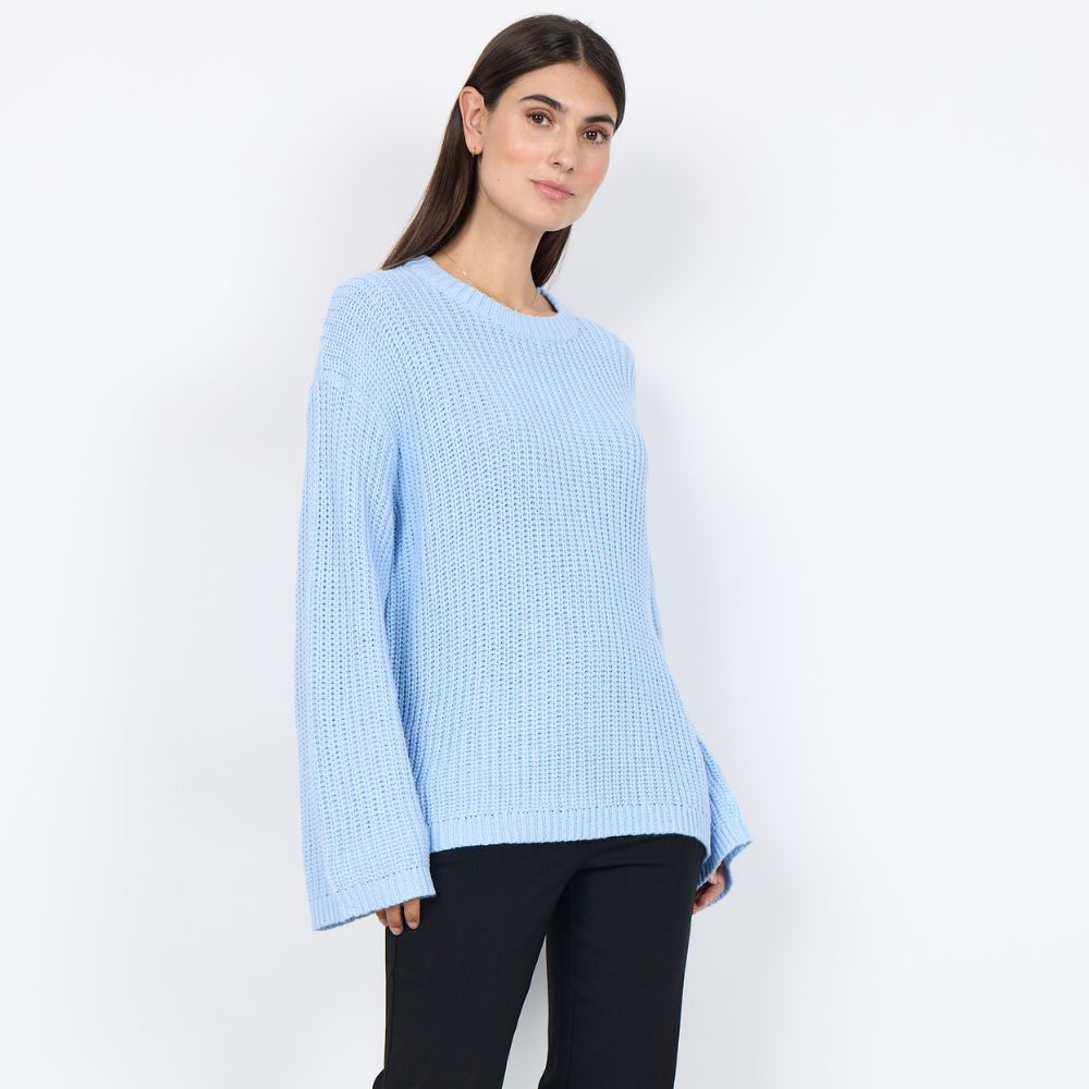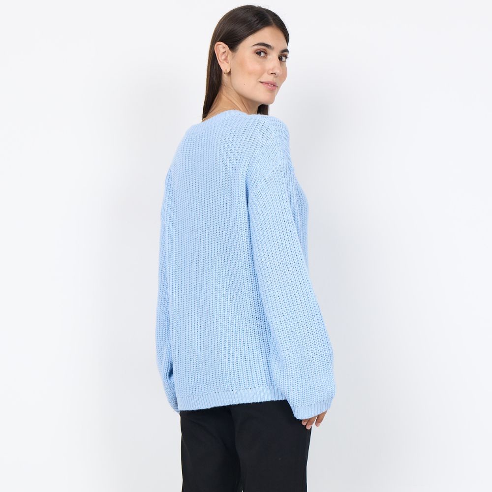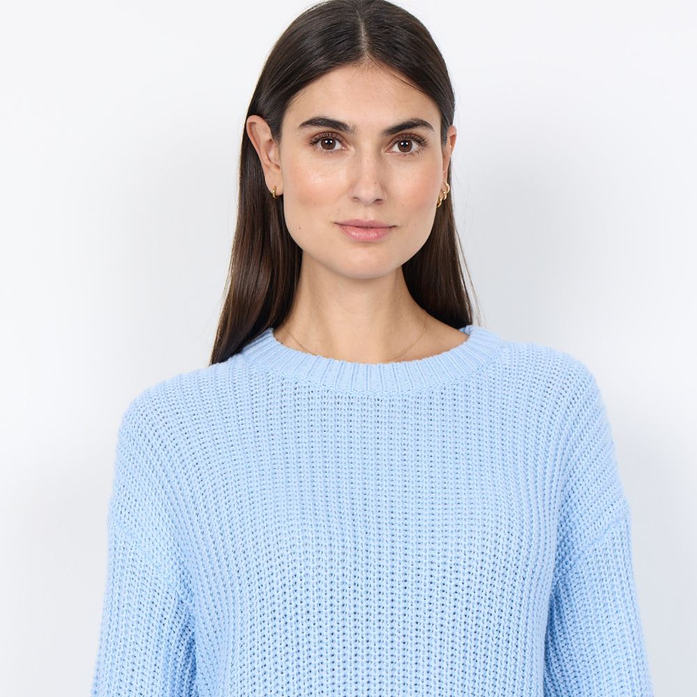 Soyaconcept –vaaleansininen puuvillaneule on raikas ja helposti yhdisteltävä arkipaita. Rento istuvuus ja elävä neulospinta tekevät siitä mukavan käyttää. Selkeä malli toimii monenlaisissa asukokonaisuuksissa.