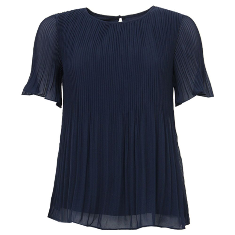 STI – tummansininen sifonkipusero, jossa ohuet läpikuultavat hihat ja pyöreä pääntie on kevyt ja kauniisti laskeutuva valinta arkeen ja juhlavampiin hetkiin. Sen ilmava materiaali ja hienostunut pliseeraus tekevät ilmeestä huolitellun. Pusero tuntuu miellyttävältä päällä ja liikkuu kevyesti mukana.