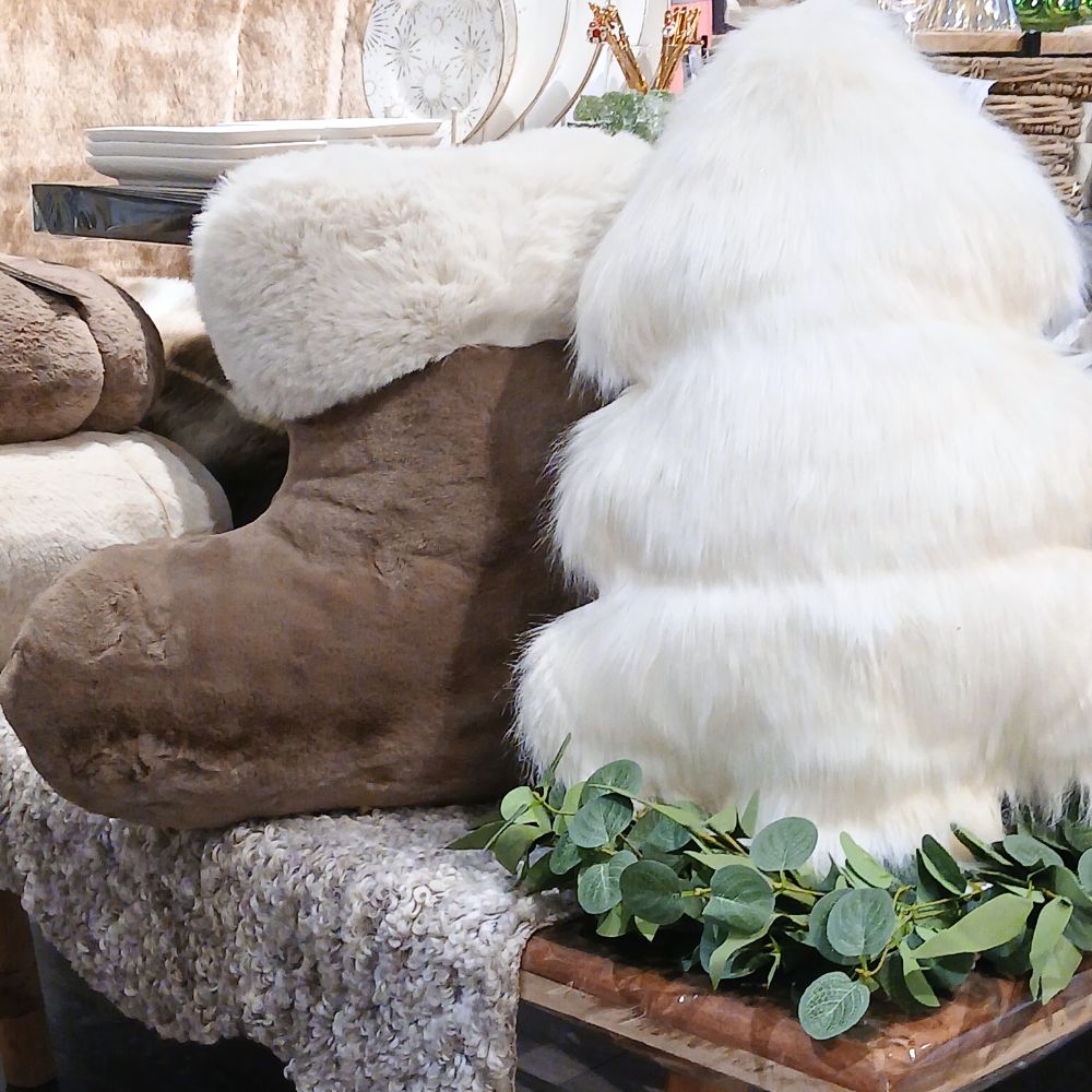 Box Pillow Flyffy Tree Faux Fur Rivièra Maison – ylellisen pehmeä kuusenmuotoinen sisustustyyny tuo kotiin lämpöä ja talvista tunnelmaa. Valkoinen tekoturkistyyny hurmaa pehmeydellään ja sopii täydellisesti sohvalle, nojatuoliin tai sängyn päälle tuomaan ripauksen juhlan tuntua arkeen.
