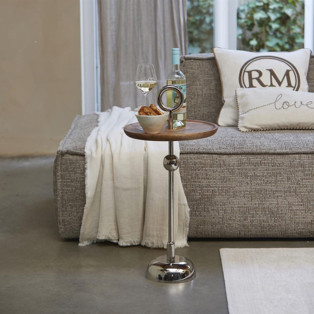 Side Table Colonna Rivièra Maison – pyöreä sivupöytä tuo sisustukseen pehmeää muotoa ja luonnollista ilmettä. Rivièra Maison Colonna -sivupöydässä yhdistyvät mangopuun lämmin sävy ja alumiininen jalka. Se sopii hyvin olohuoneeseen, makuuhuoneeseen tai sivupöydäksi nojatuolin viereen.