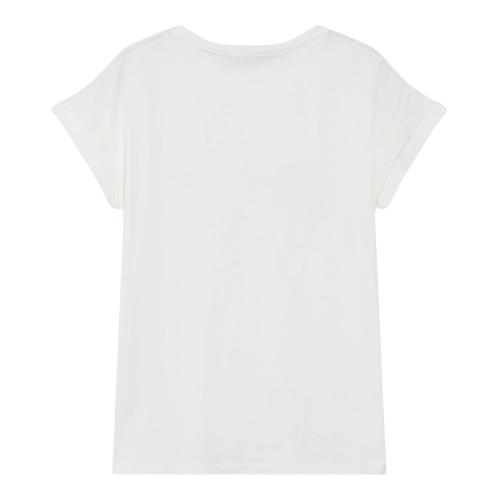Raikas valkoinen T-paita on vaatekaapin luottotuote, jossa yhdistyvät mukavuus ja näyttävä ilme. Etuosan samettipintainen teksti tuo asuun persoonallisen ja rennon sävyn. Suora malli ja pehmeä puuvilla tekevät paidasta helpon valinnan arkeen.