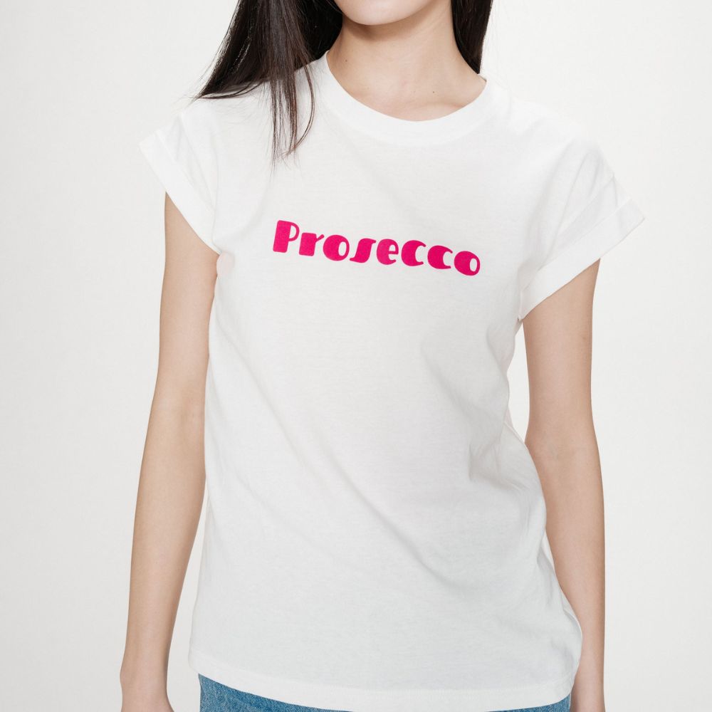 - samettimainen ”prosecco” -tekstiprintti edessä
