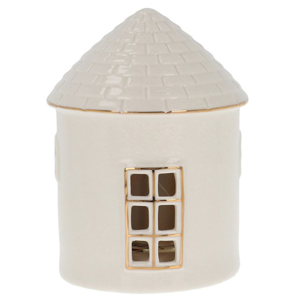 Valkoinen pyöreän mallinen talolyhty sopii monen tyyliseen sisustukseen ja sen tunnelmallinen valo ihastuttaa myös joulukodissa. Yksityiskohtainen keraaminen talolyhty on myös mukava lahjaidea!