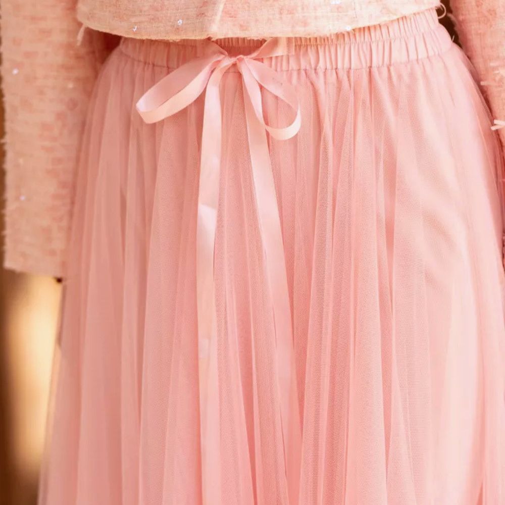 - vaaleanpunainen hameosa, jonka päällä tylli