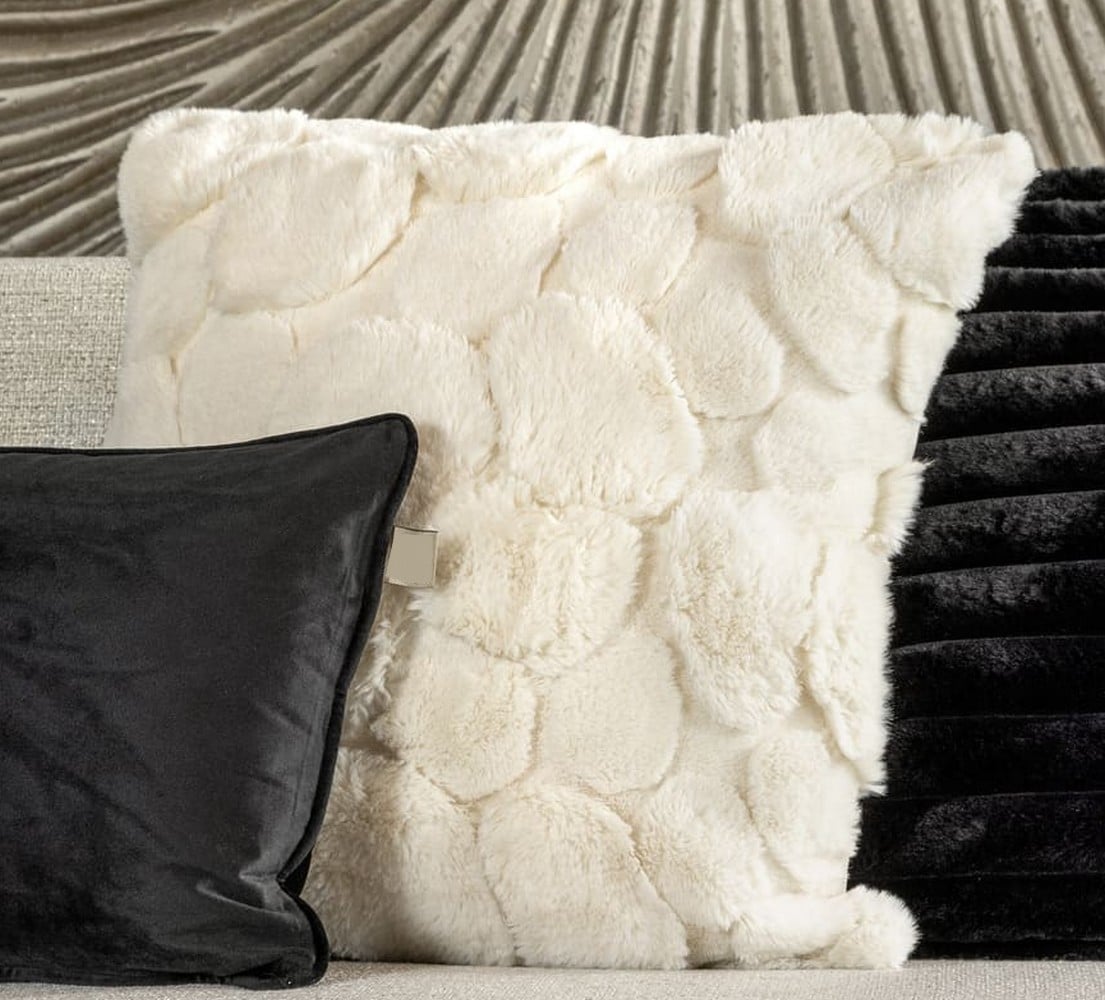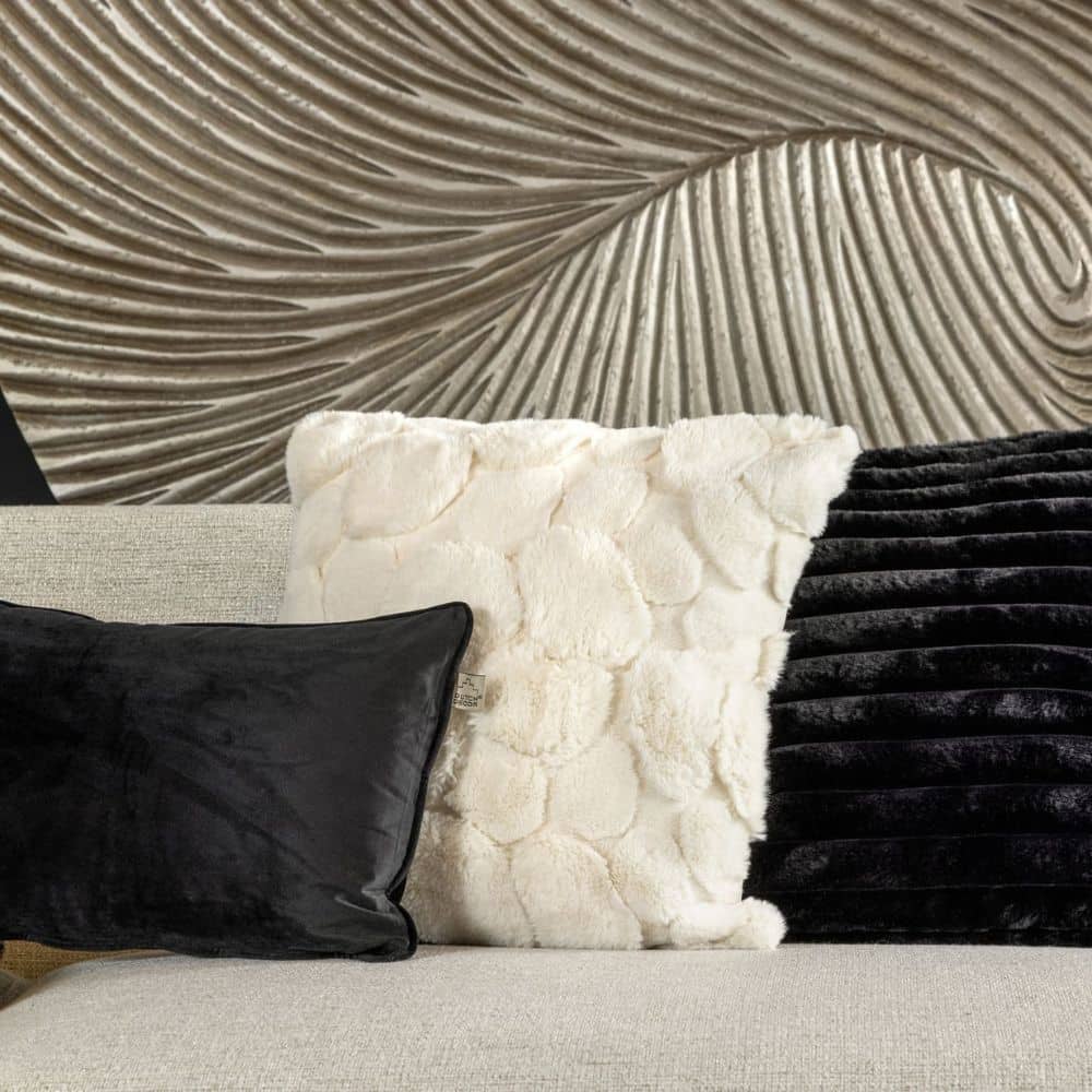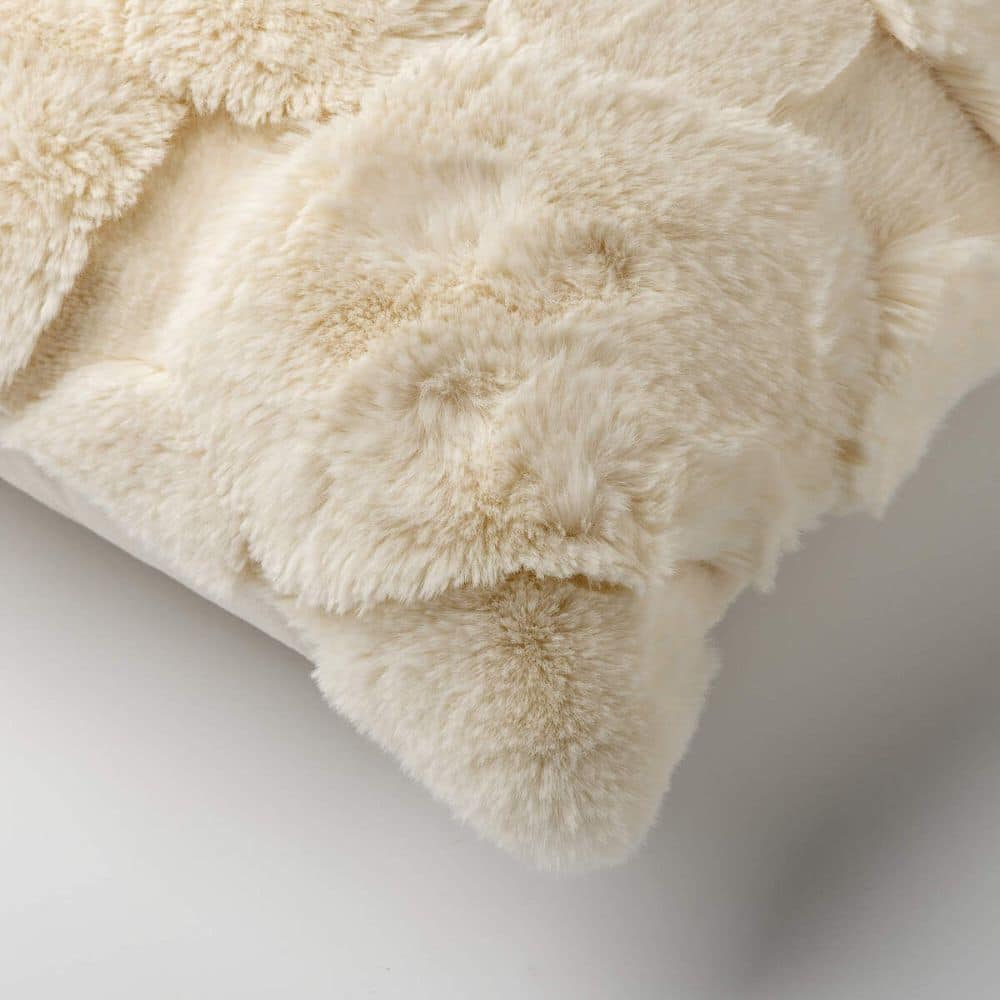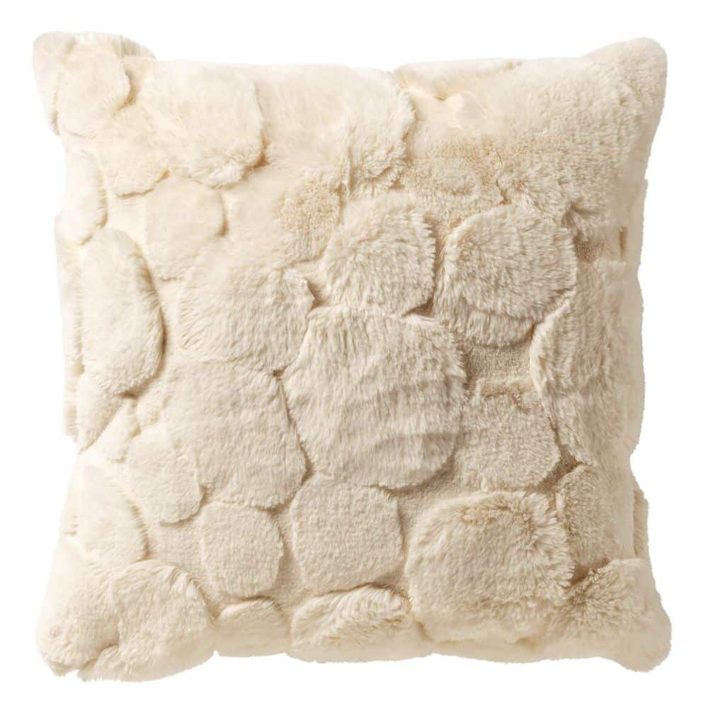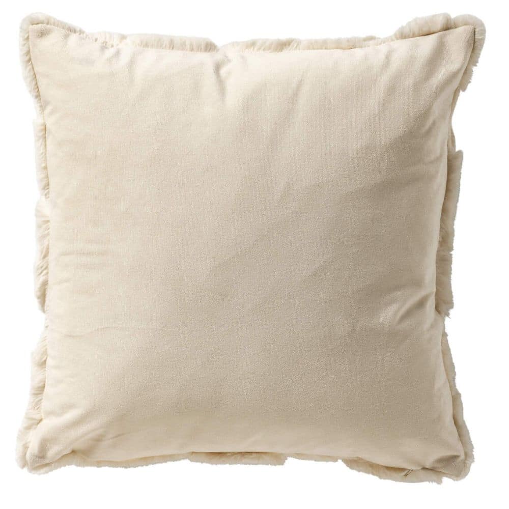Luonnonvaalea tyynynpäällinen, joka on ihanan pehmeää pörrömateriaalia. Etupuolella on kaunis kohokuviointi ja takapuolella sileä samettipinta. Vaaleasävyinen päällinen on helppo yhdistellä kodin muiden tekstiilien kanssa.