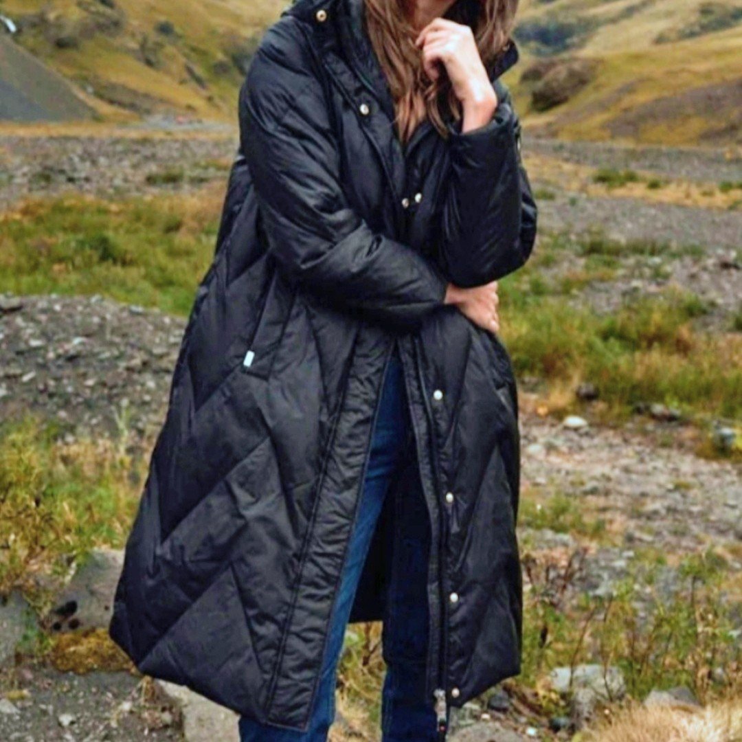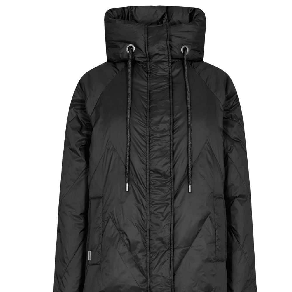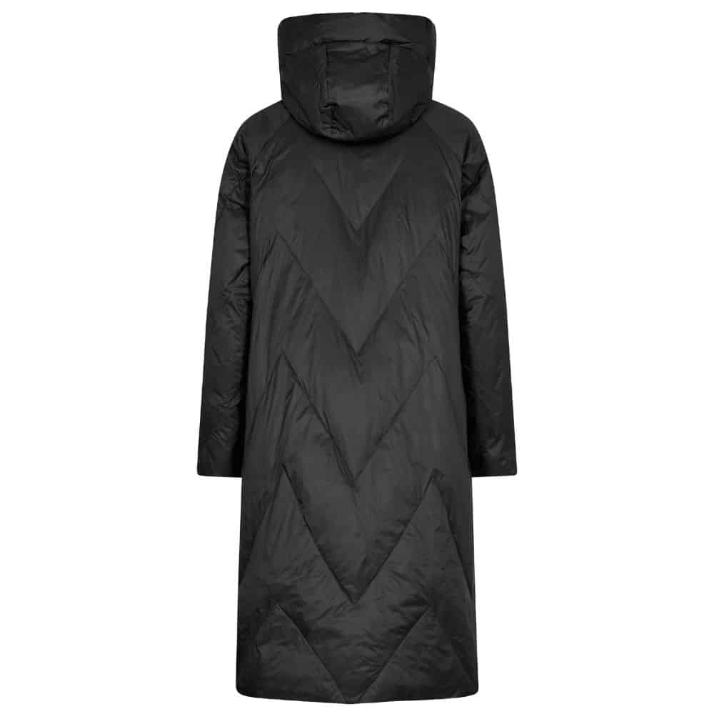 Mos Mosh – musta kevytuntuvatakki on kevyt mutta lämmin valinta kylmiin päiviin. Pitkä hivenen A-linjainen malli suojaa viimalta ja kauniisti tikattu kuosi antaa takille modernin ilmeen. Käytännöllinen korkea kaulus ja huomaamattomat taskut tekevät takista tyylikkään ja toimivan.