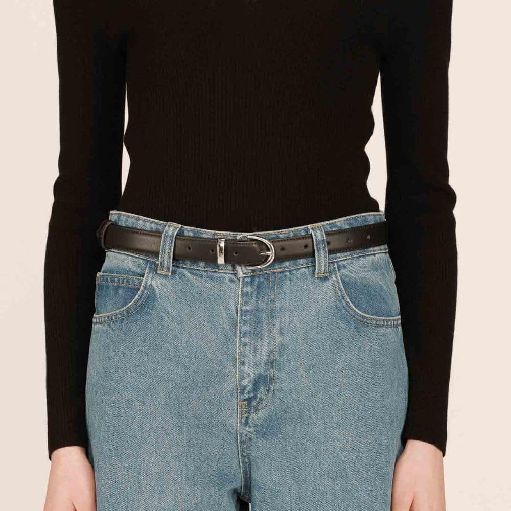 G&M – musta nahkavyö on tyylikäs ja monikäyttöinen asuste, joka sopii täydellisesti arkeen ja juhlaan. Aito nahka ja hopeanvärinen solki tekevät vyöstä kestävän ja ajattoman valinnan. Sen avulla viimeistelet asun ja korostat kauniisti siluettia.